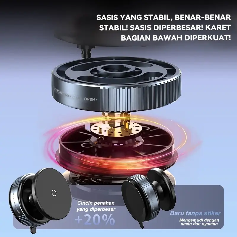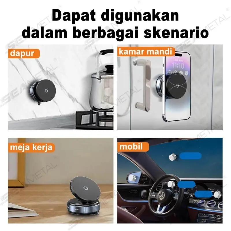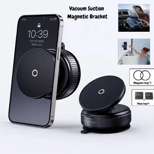 Dudukan HP vakum Magnetik ini adalah solusi praktis untuk kebutuhan navigasi mobil, menonton video, atau vlog di rumah. Menggunakan teknologi vakum murni dan magnet ring besar, produk ini dapat menempel kuat di berbagai permukaan halus seperti dashboard mobil, meja kaca, keramik, dan kayu. Tanpa lem, tanpa bekas, dan tidak merusak permukaan. Desainnya yang ramping dan kokoh cocok untuk penggunaan jangka panjang. Tersedia dalam warna hitam elegan.