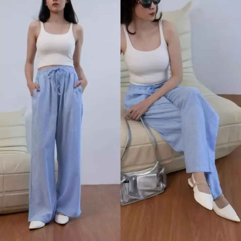 ✨ Kulot pinstripe ini menawarkan gaya yang modern dan fleksibel. Cocok untuk wanita yang mencari celana yang nyaman dan stylish. Cocok untuk kegiatan sehari-hari. 🌟