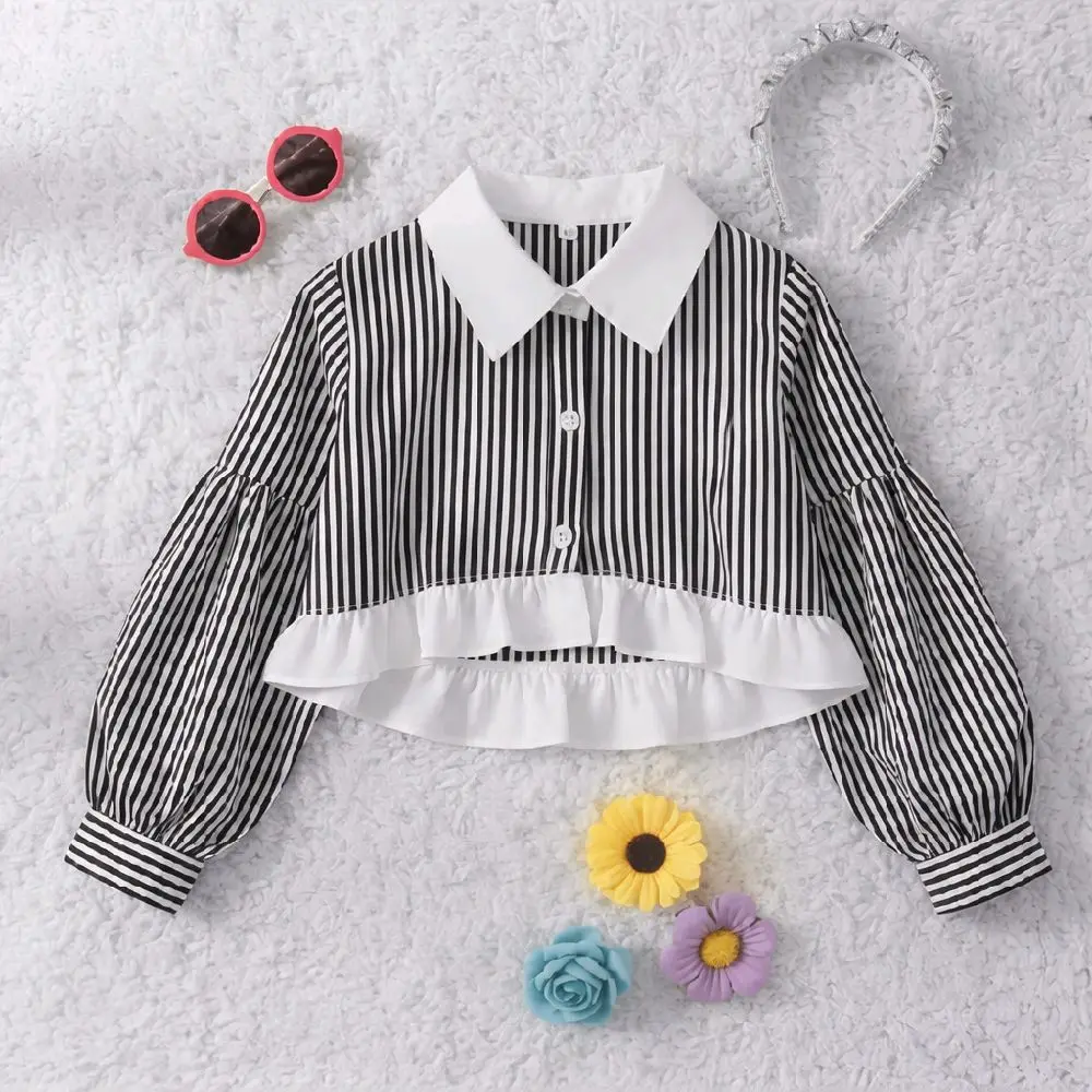 Kemeja ini adalah pilihan yang tepat untuk anak perempuan Anda. Dengan desain ruffle dan lengan panjang, kemeja ini menawarkan ga