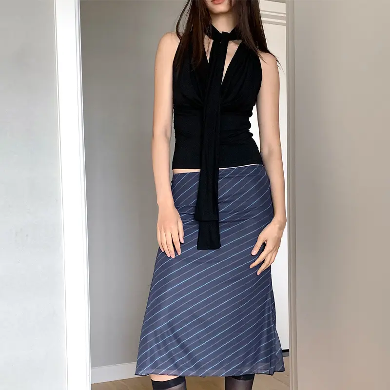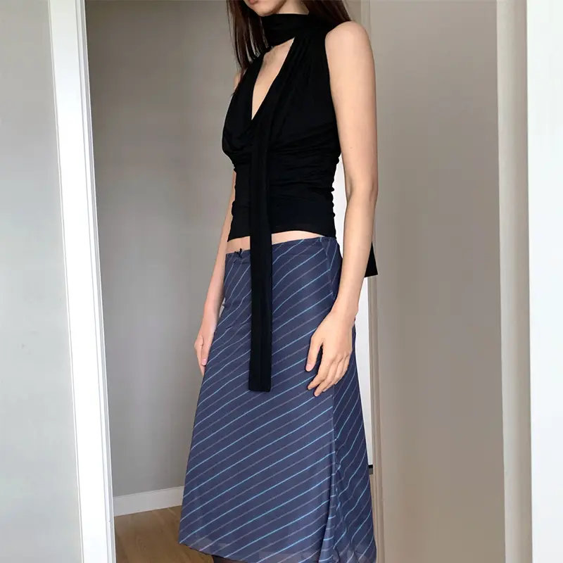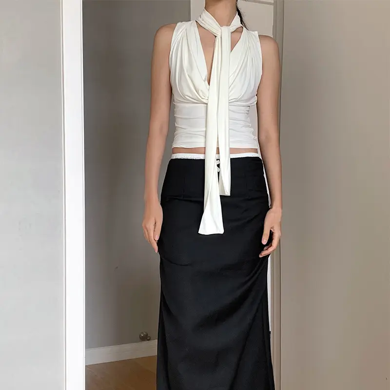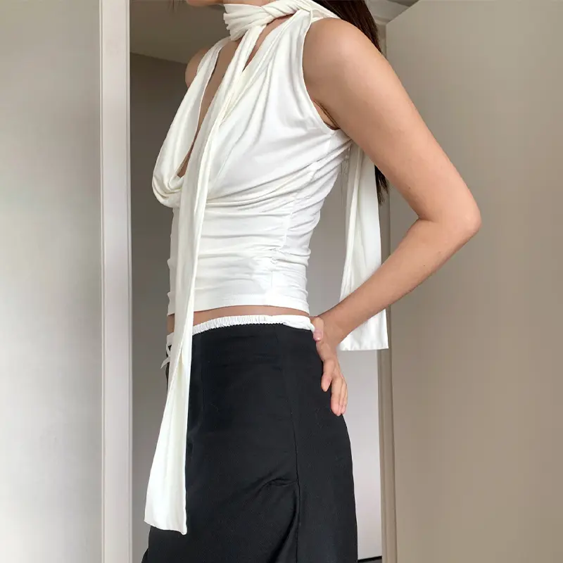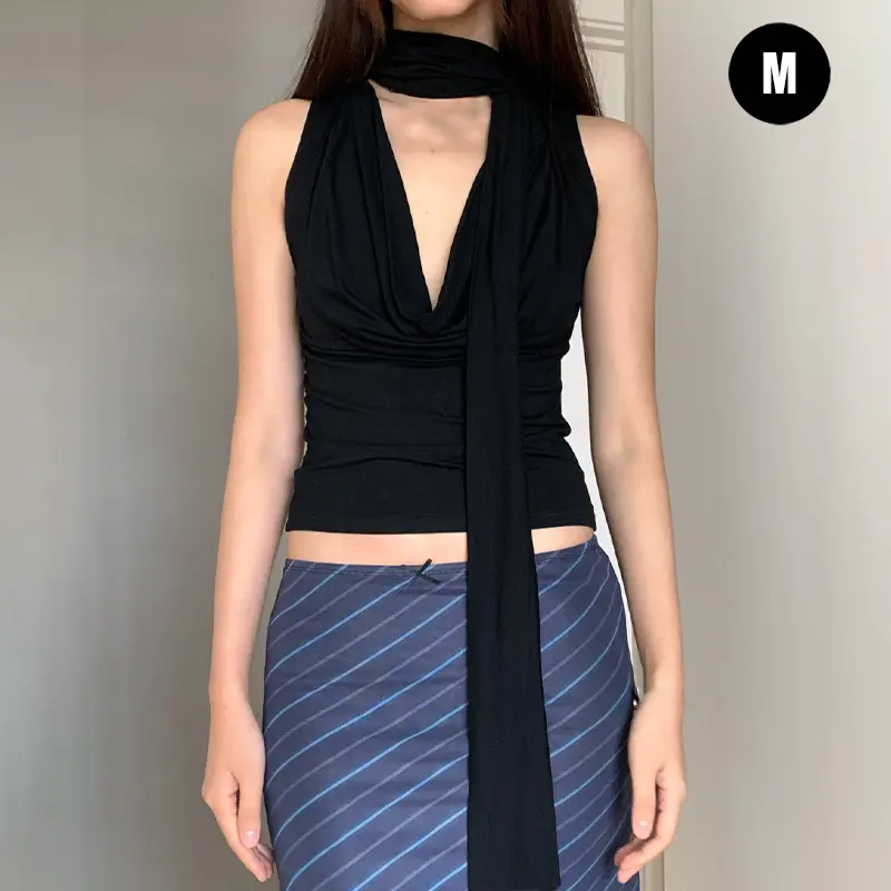 Atasan Tanpa Lengan Pita Serbaguna Rompi Kerah Ayun Camisole Ramping Seksi Gadis Panas