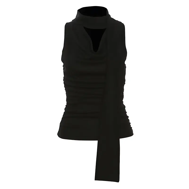 Desain: Atasan tanpa lengan ini memiliki desain yang membuat leher Anda terlihat lebih ramping dan menambah kesan seksi. Kerah yang berayun menonjolkan kesan seksi dan elegan, sementara desain yang pas di badan dapat memperlihatkan lingkar pinggang Anda yang lebih besar.