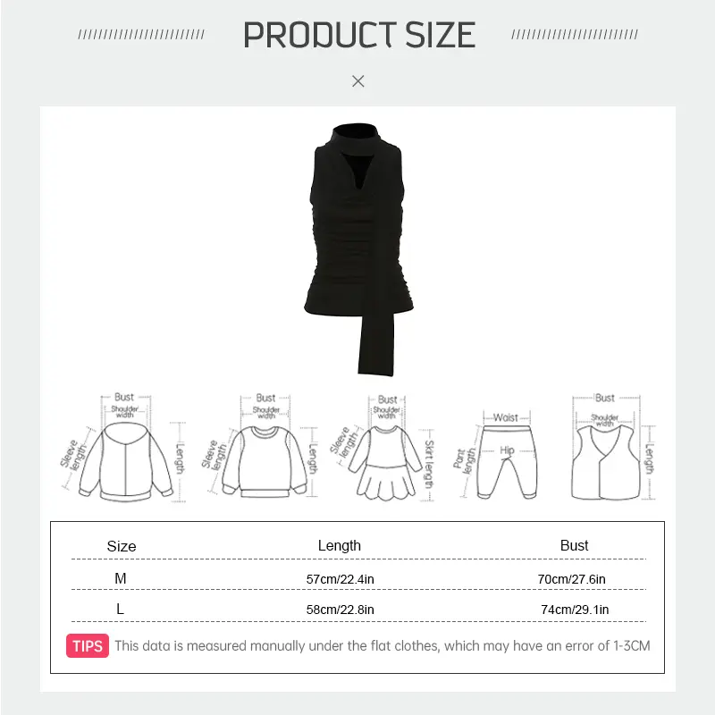 [Ukuran M]: Panjang: 57cm/22,4inci, Dada: 70cm/27,6inci, Kira-kira.