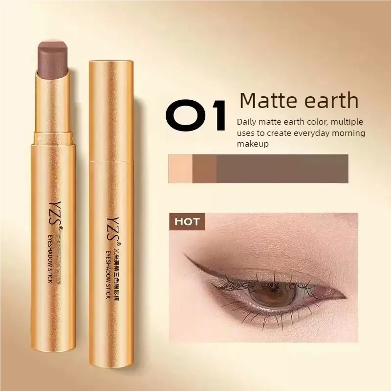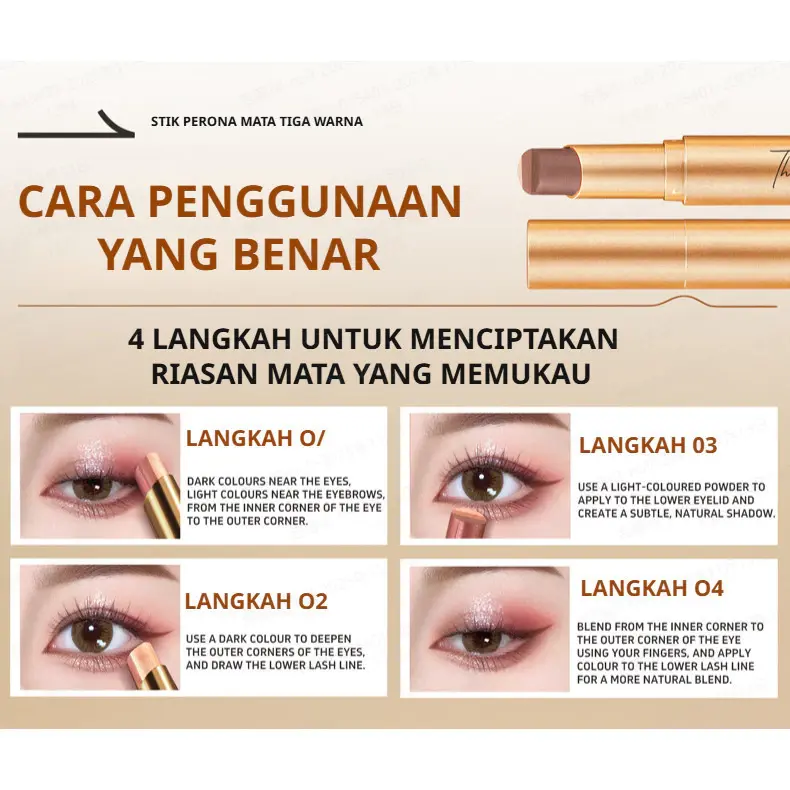 VIPABC Stik Eyeshadow Matte & Shimmer Gradien Tiga Warna - Mutiara Alami dengan Saturasi Rendah - Tiga Warna dalam Satu Sentuhan untuk Pemakaian Tahan Lama