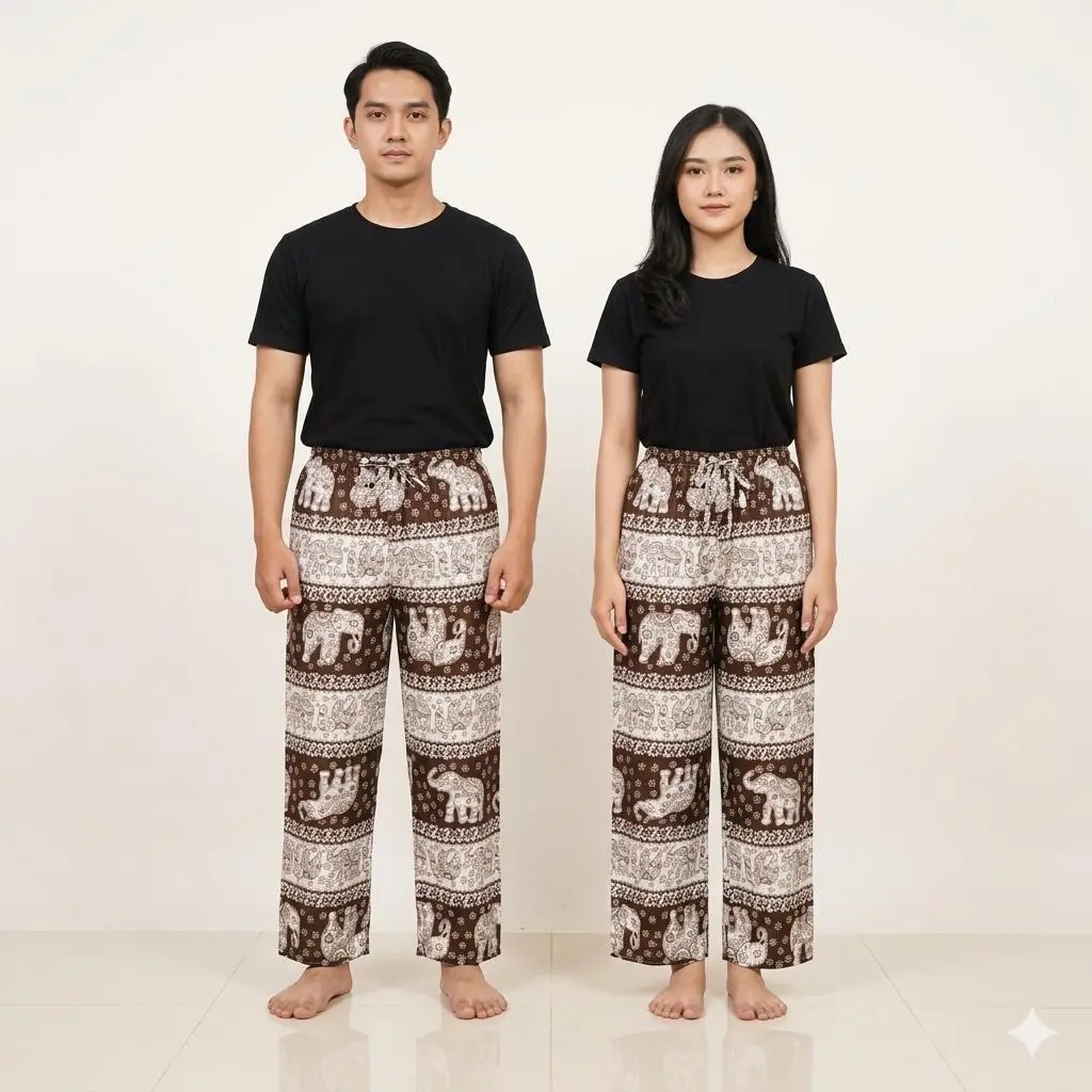 Celana kulot Mihu Mihu motif gajah menggunakan bahan katun rayon yang lembut, ringan, dan nyaman dipakai.