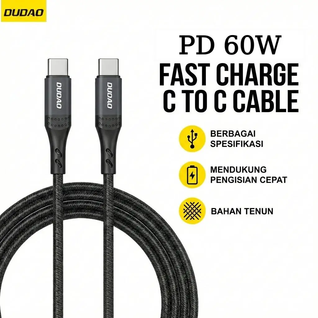 5. DUDAO Kabel Charger Anyaman 2-in-1 PD 30W/60W/100W Type-C/Lightning 3A/5A Panjang 1.2/2M Hitam!