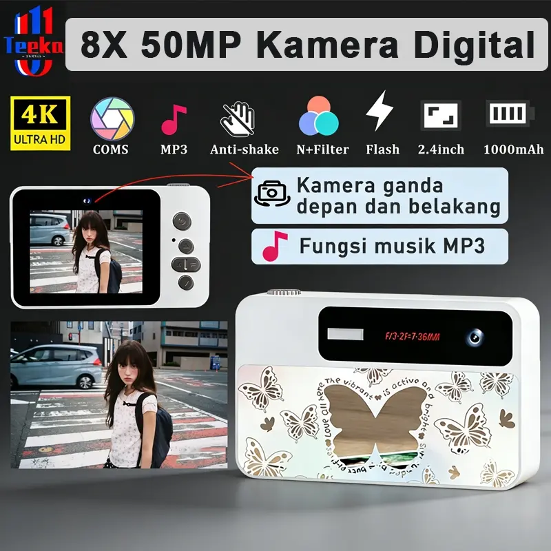 This digital camera can take 50MP photos, 4K video output, ultra clear and crisp images, with rich and vivid details, accurate color reproduction, and support for 8x digital zoom.