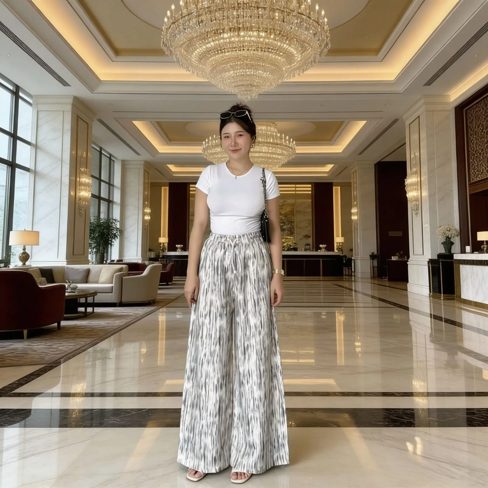 Everyday Pants - Motif Abstrak - Celana Panjang Wanita Baggy Kantor Kuliah - Kulot Pinstripe - Celana Formal Casual
