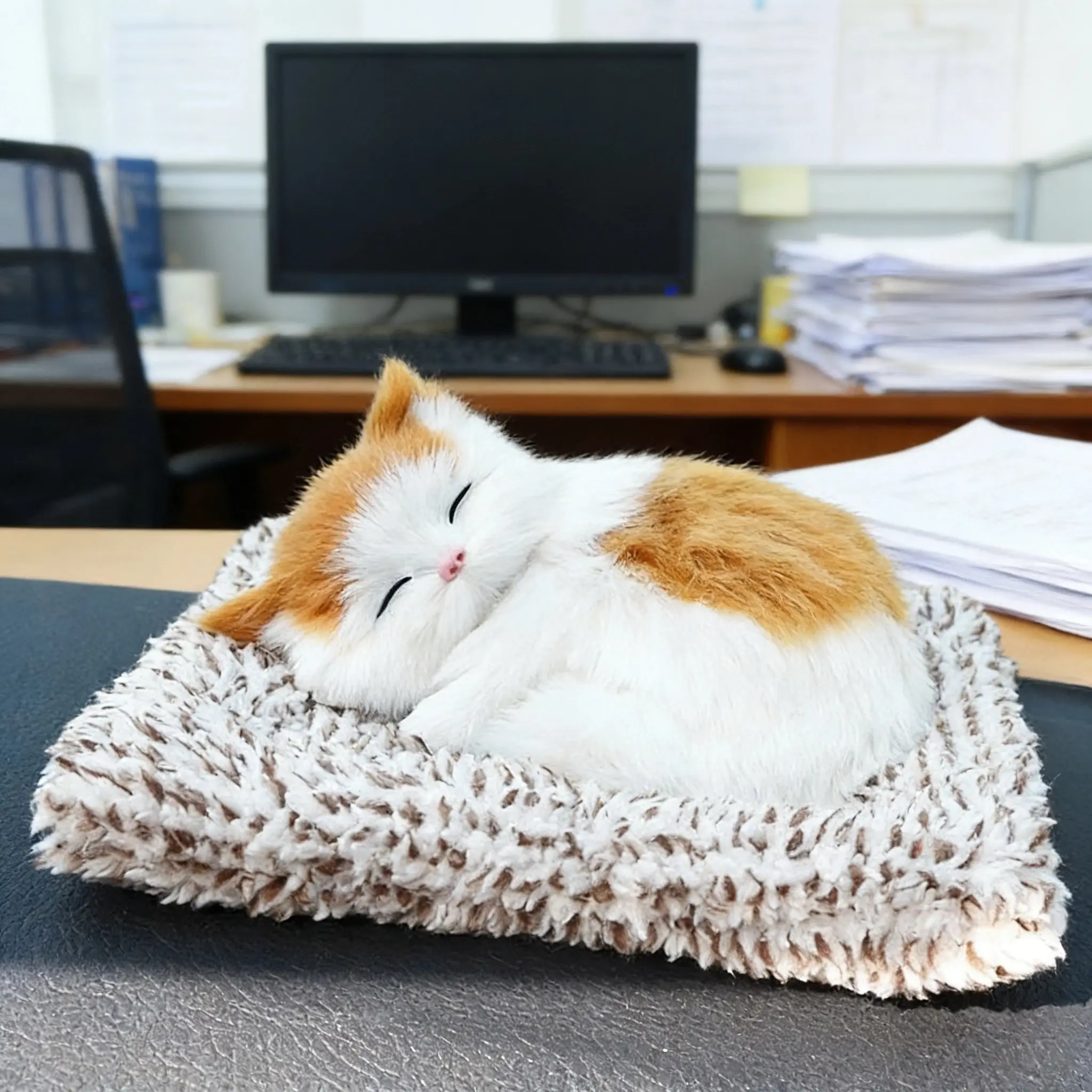 Boneka Kucing Meong Interaktif | Sentuhan & Bunyi Nyata | Dekorasi Meja Kerja