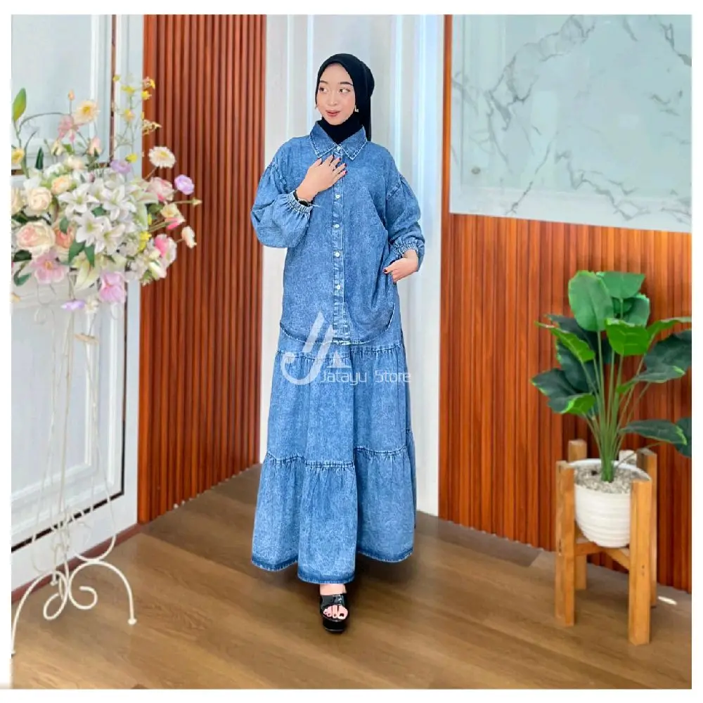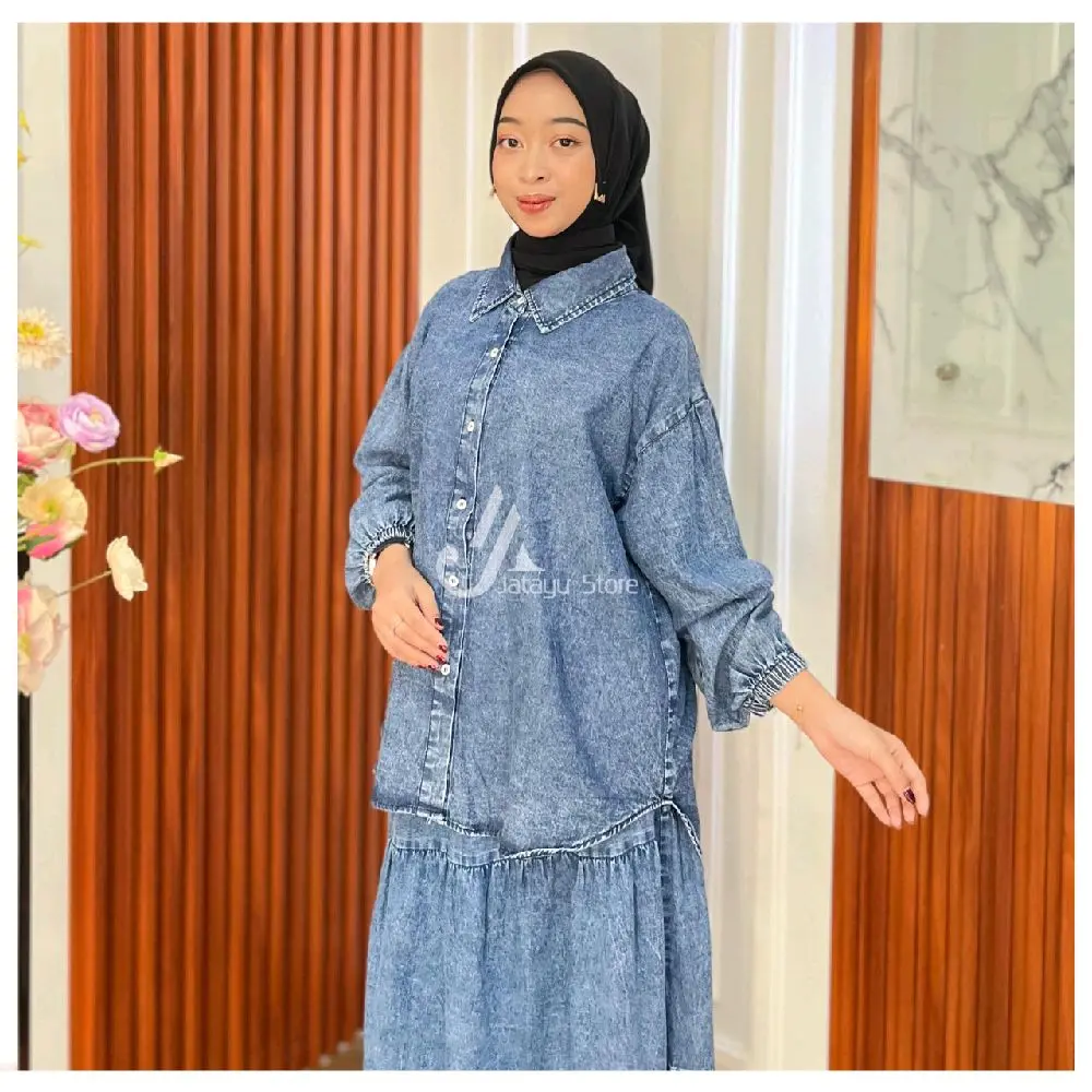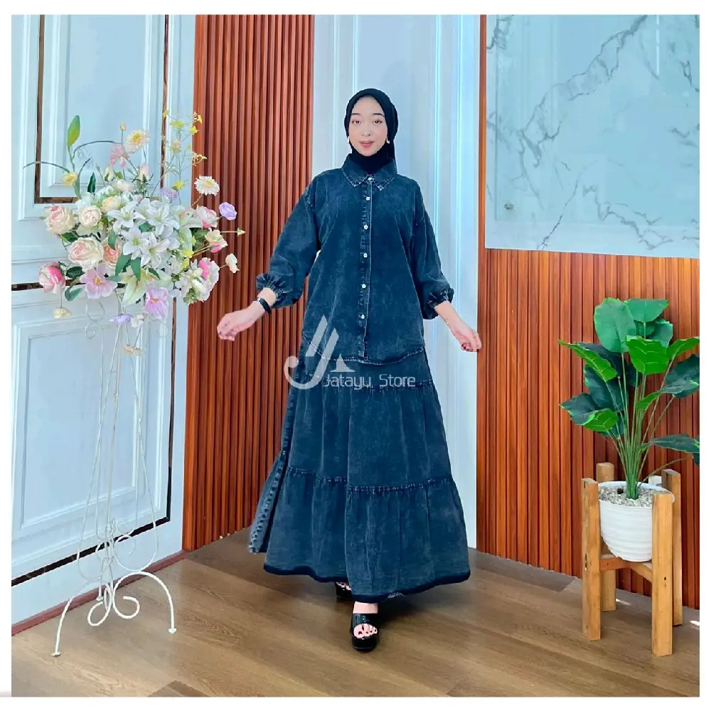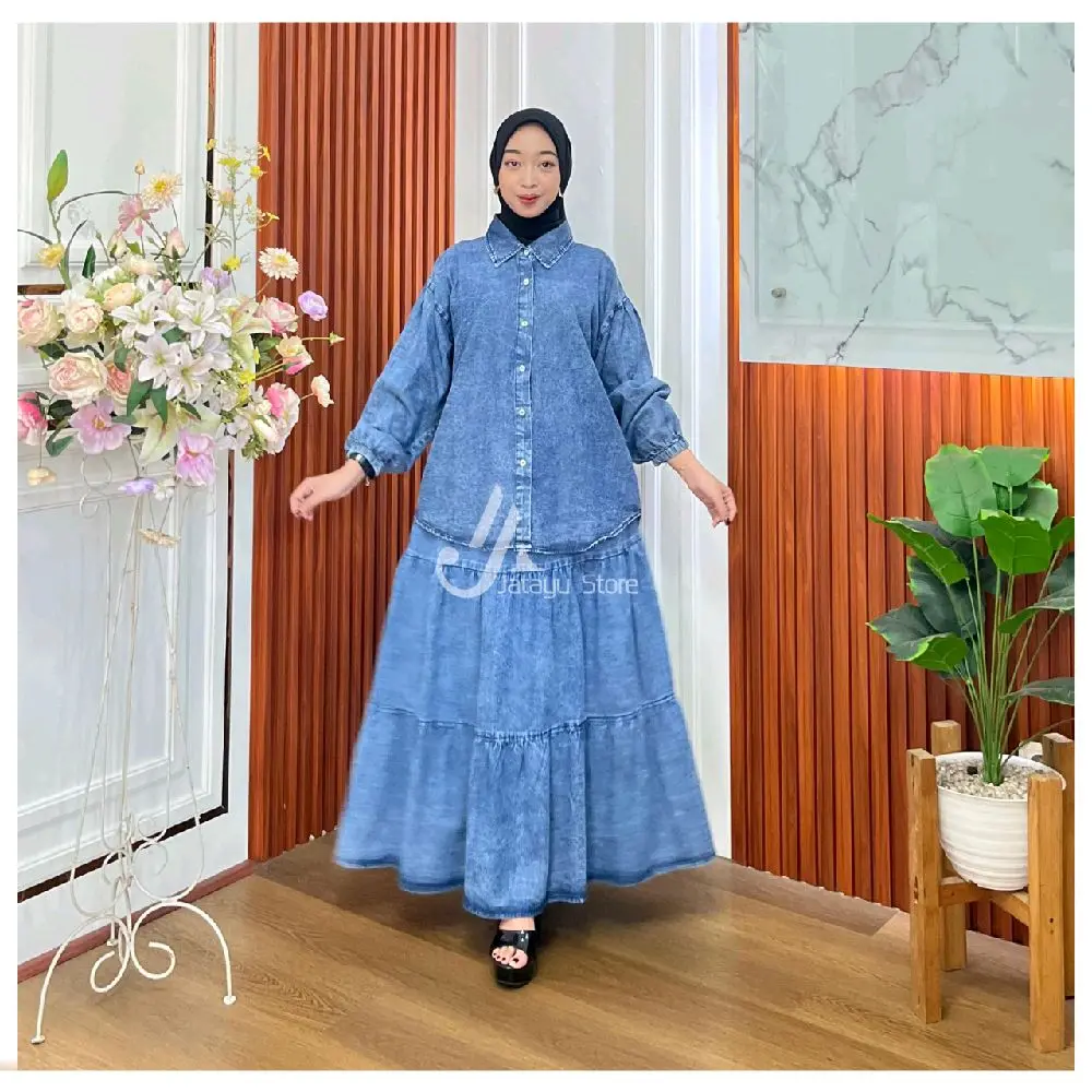 Jatayu Store - Set Rok Jeans Wash Kemeja dan Rok All Size Muat Semua Ukuran untuk Wanita