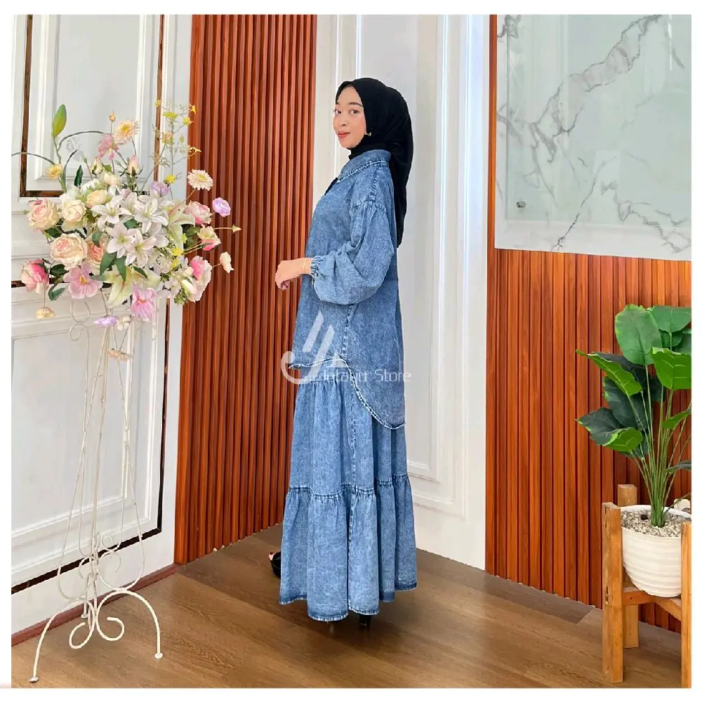 Set Rok Jeans Wash Kemeja dan Rok All Size