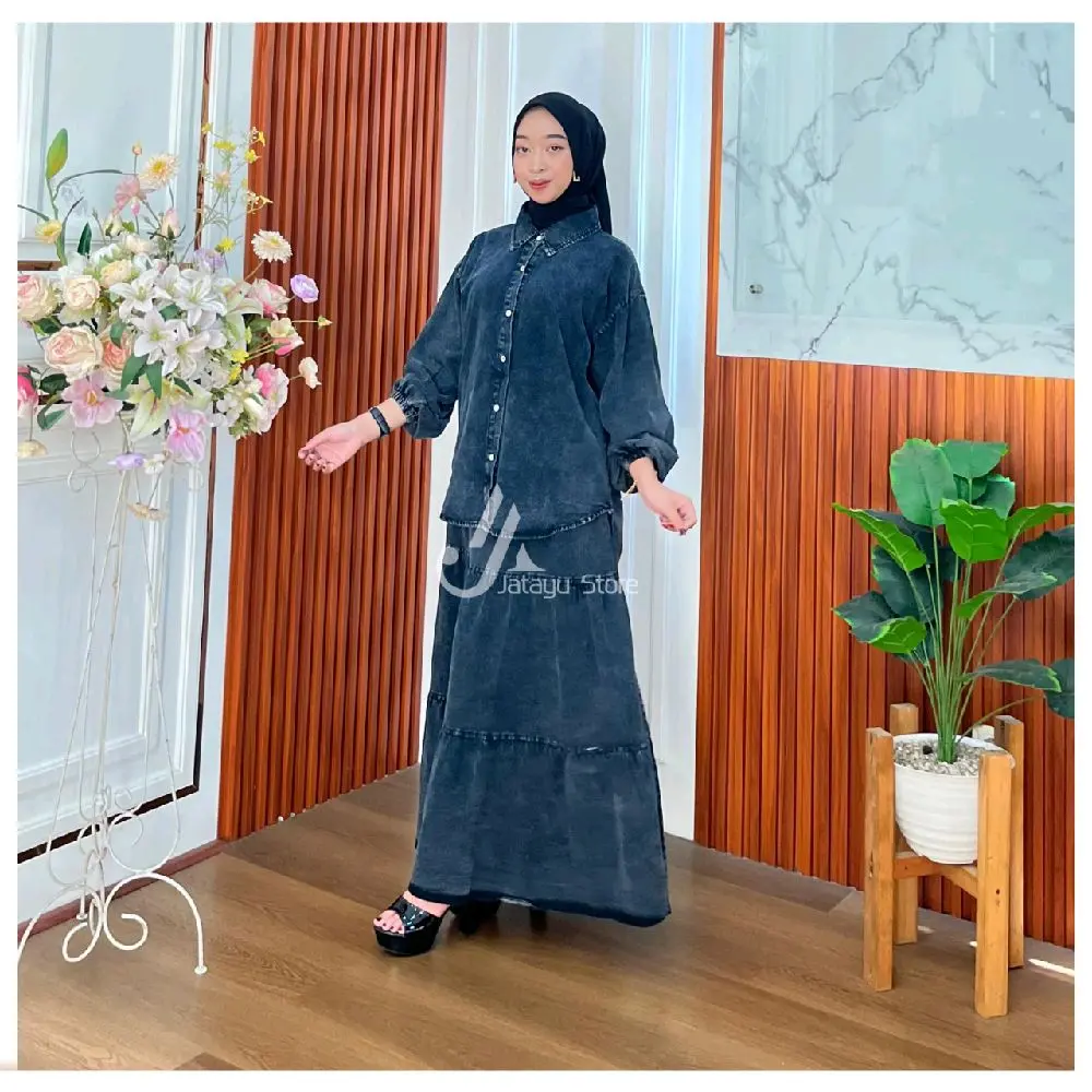 ·Bahan: Jeans wash, memberikan tampilan yang modern dan stylish.