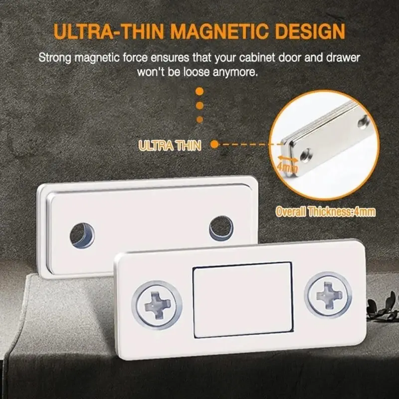 Ketebalan magnet yang tipis dapat di gunakan untuk semua ukuran dan bentuk pintu lemari maupun laci sehingga celahnya sangat tipis.