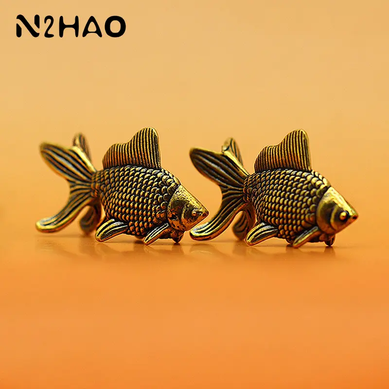 Goldfish Figurines Retro Brass Lucky Animal Statue Ornament Home Decor Desk Decoration Tea Pet Cute Gifts