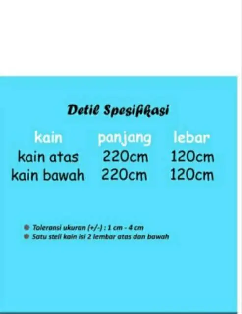 Terdiri dari 2 lembar kain (untuk atasan dan bawahan) tanpa jahitan ukuran 180 x 105 cm.