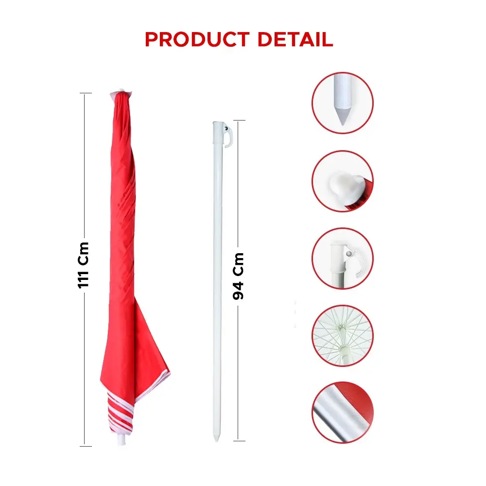 - Menggunakan Sistem Sambung Untuk Payung Dan Tiangnya (Dapat Dilepas) Sehingga Jika Payung Sedang Tidak Digunakan Dapat Menjadi Pendek (Tidak Ribet Dibawa).