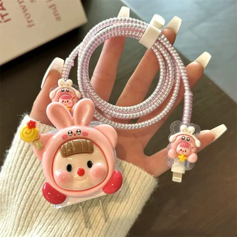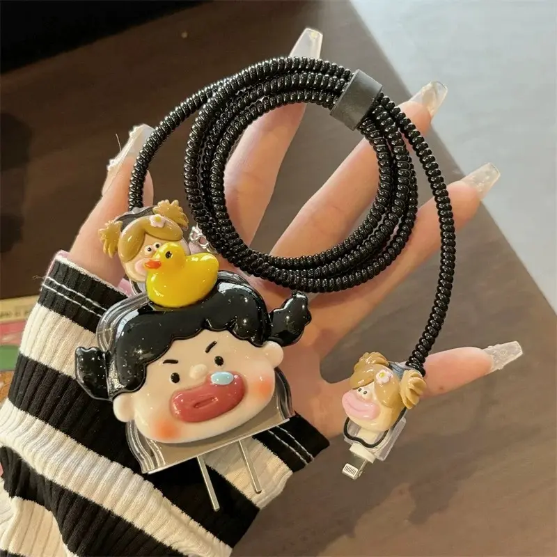 Desain: Set ini dibagi menjadi empat bagian.Salah satunya adalah wadah pelindung untuk colokan pengisi daya, yang dihiasi dengan ornamen lucu, membuatnya sangat lucu dan indah;Yang kedua adalah struktur spiral dari kabel pelindung kabel pengisi daya, yang dililitkan di sekeliling kabel asli dan dapat melindungi kabel agar tidak putus.Sekalipun rusak, bahan insulasi struktur spiral juga dapat melindungi Anda dari sengatan listrik;Bagian ketiga dan keempat untuk melindungi kedua ujung kabel pengisi daya, yang juga dihiasi dengan pola lucu untuk mencegah kabel pengisi daya putus karena pembengkokan dalam jangka waktu lama.