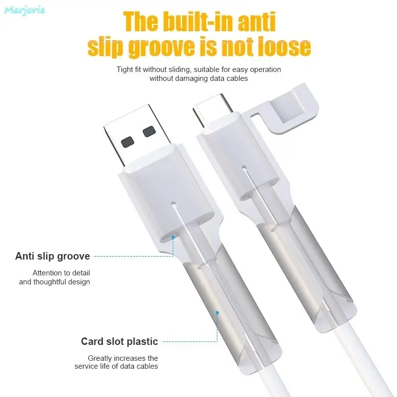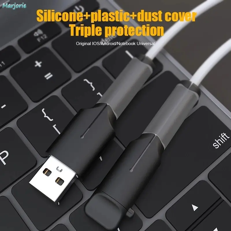 Kualitas: Terbuat dari silikon, lembut dan fleksibel, sangat kuat dan memiliki umur pakai yang panjang.Salah satu pelindung kabel memiliki tali tambahan.Saat menyimpan kabel data, Anda dapat mengikatnya menjadi satu untuk mencegah kekacauan.
