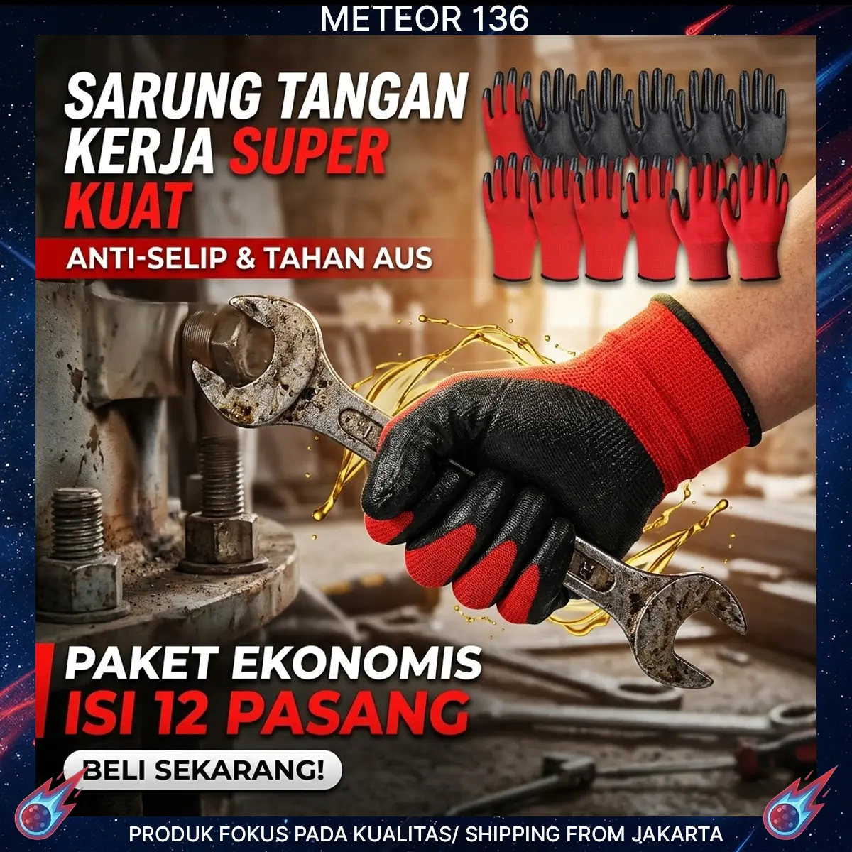 ยทTingkatkan keamanan dan produktivitas kerja Anda dengan paket ekonomis 1 lusin (12 pasang) sarung tangan kerja berkualitas tinggi. Dirancang khusus dengan kombinasi warna Merah-Hitam yang modern, sarung tangan ini adalah pilihan wajib bagi para profesional di bengkel, konstruksi, maupun industri manufaktur!