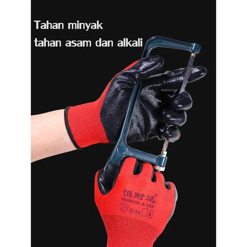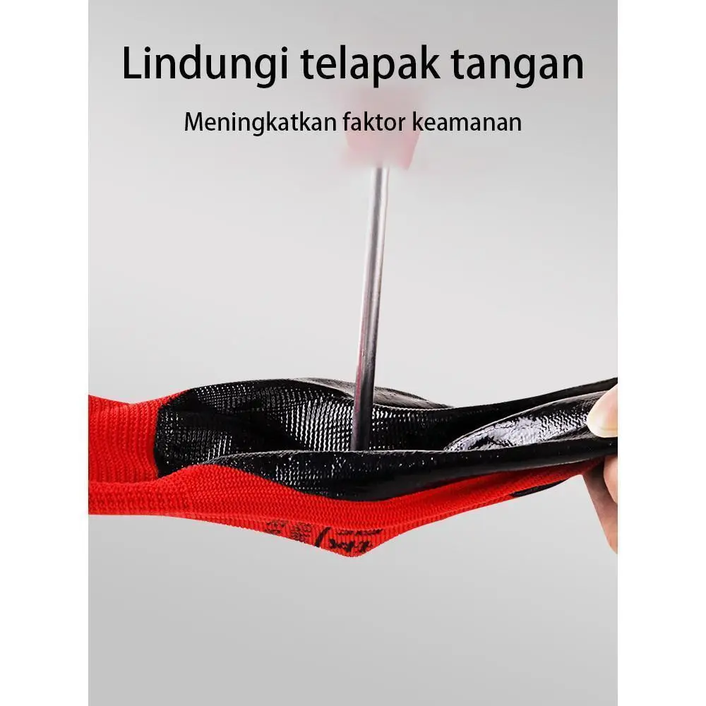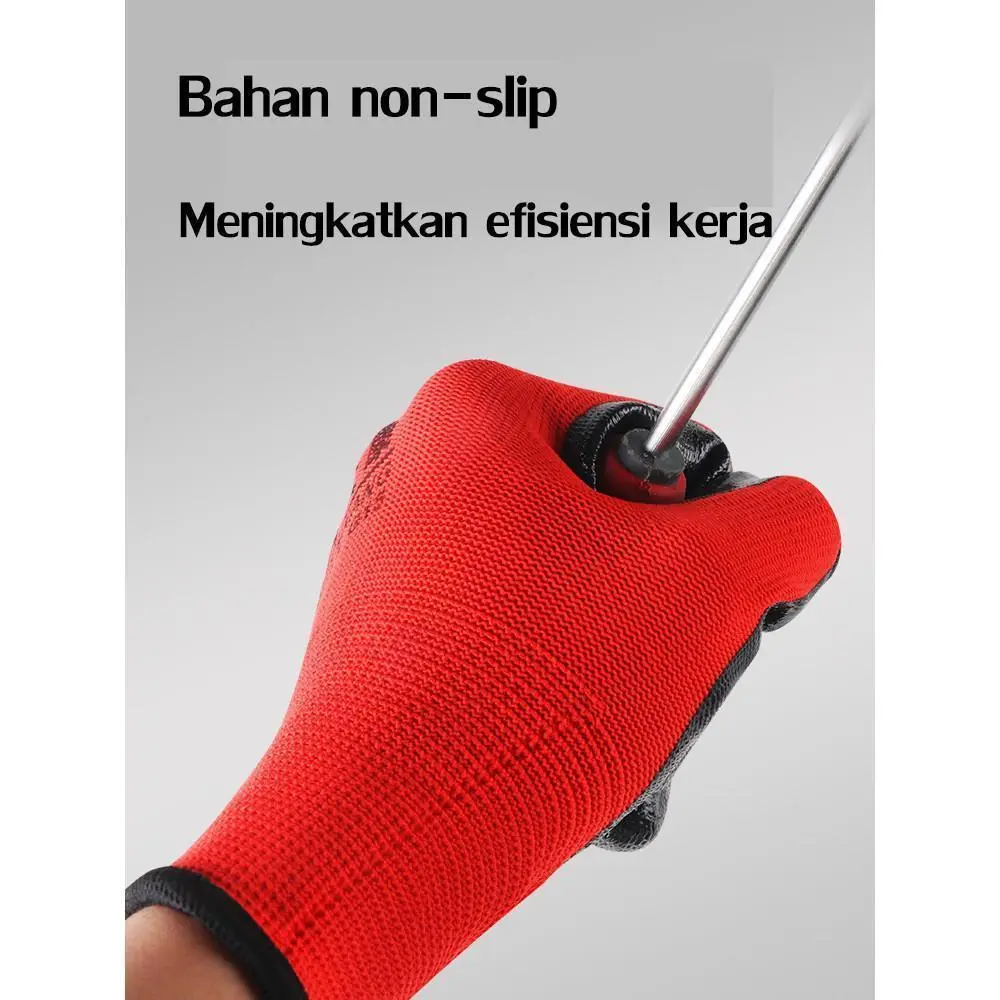 ยท๐งค Sarung Tangan Kerja Safety Red-Black Premium (Isi 12 Pasang) โ Solusi Perlindungan Tangan Tangguh & Anti Selip! ๐ ๏ธ๐๏ธ