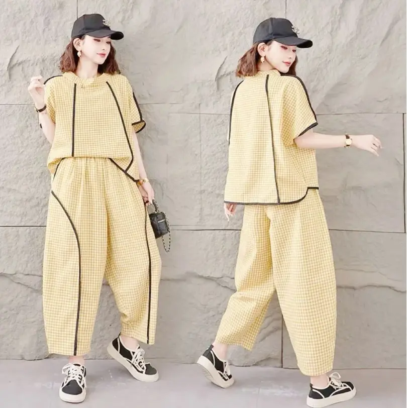 5. FADFAD Setelan Bergaris Baru Dua Potong Modis yang Ramping dan Celana bergaya untuk Wanita