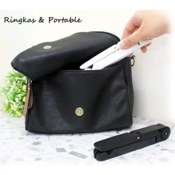 Dapat dilipat saat Anda tidak menggunakan tablet stand holder ini, dan dalam posisi terlipat tablet stand holder tidak memakan tempat saat ditaruh ditas dan mudah untuk dibawa berpergian.