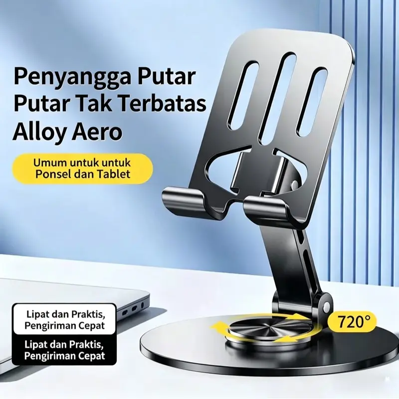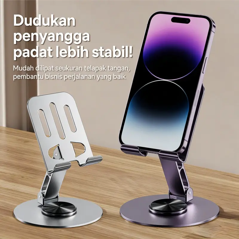 5. Dudukan HP Putar 360° Stand Meja Logam untuk Ponsel Lipat Anti Slip Pendinginan Panas Stabil Universal untuk Live Streaming & Nonton Video