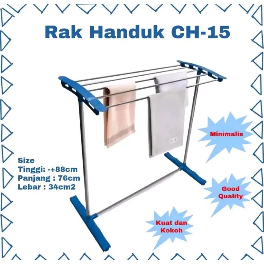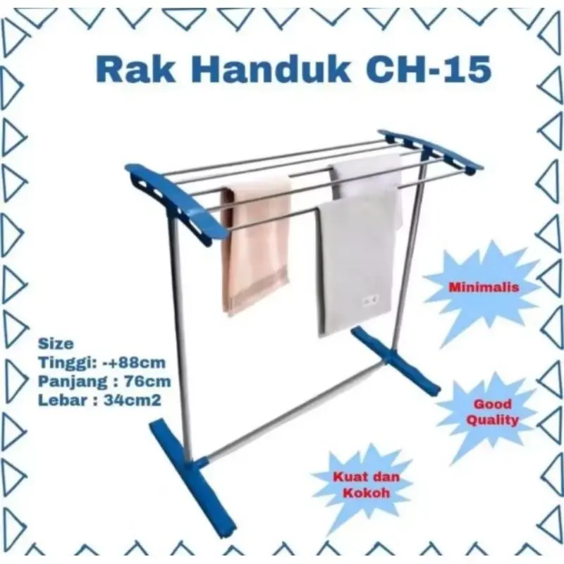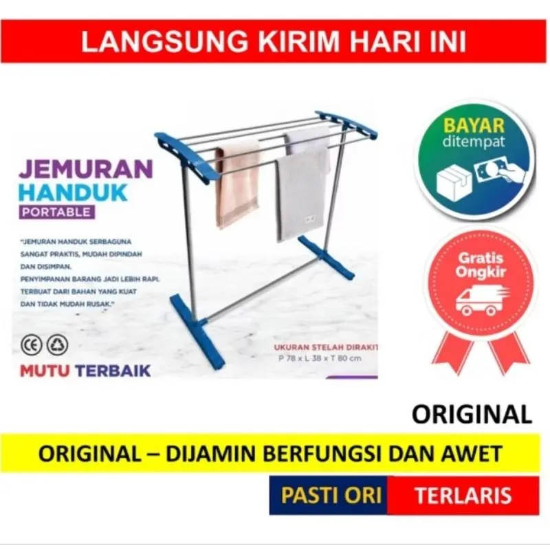 Jemuran Handuk merupakan rak handuk berbahan paduan plastik dan besi coating yang dirancang kuat, kokoh, dan anti karat sehingga praktis digunakan di dalam atau luar ruangan.Jemuran handuk ini didesain simple cocok untuk rumah, kamar kos, hotel, dan apartemen.