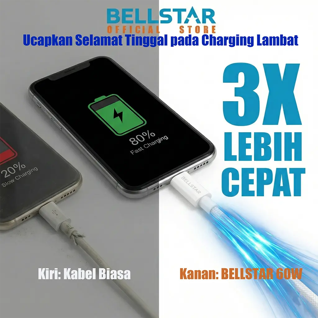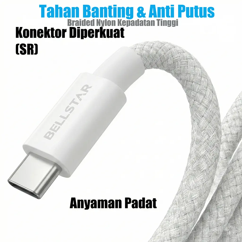 JUDUL: BELLSTAR Kabel Data Fast Charging 60W Nylon Braided Kuat Garansi 2 Tahun