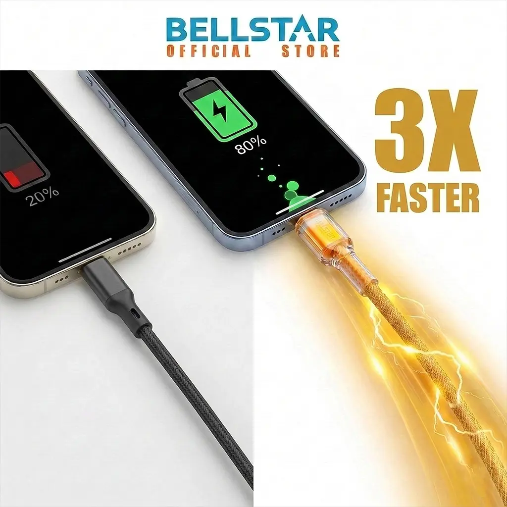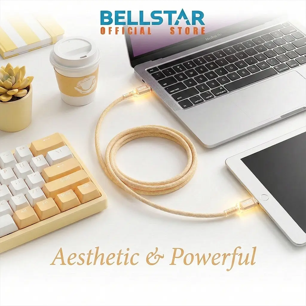 Kabel Data BELLSTAR Type C to Lightning dirancang khusus untuk Anda yang menginginkan performa pengisian daya maksimal dengan tampilan visual yang menarik. Dengan warna kuning gradasi yang unik, kabel ini tidak hanya fungsional tetapi juga menjadi aksesori yang stylish untuk perangkat Anda.