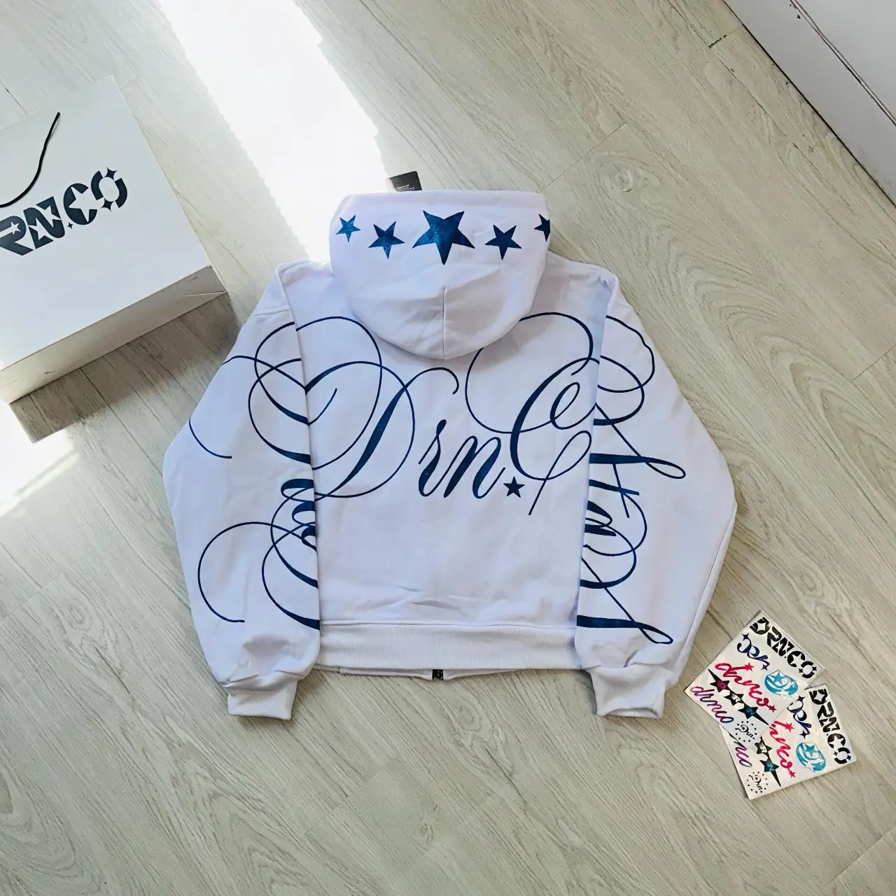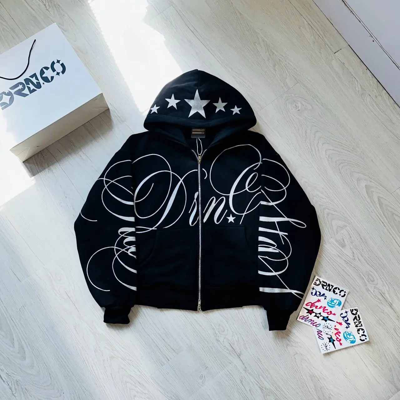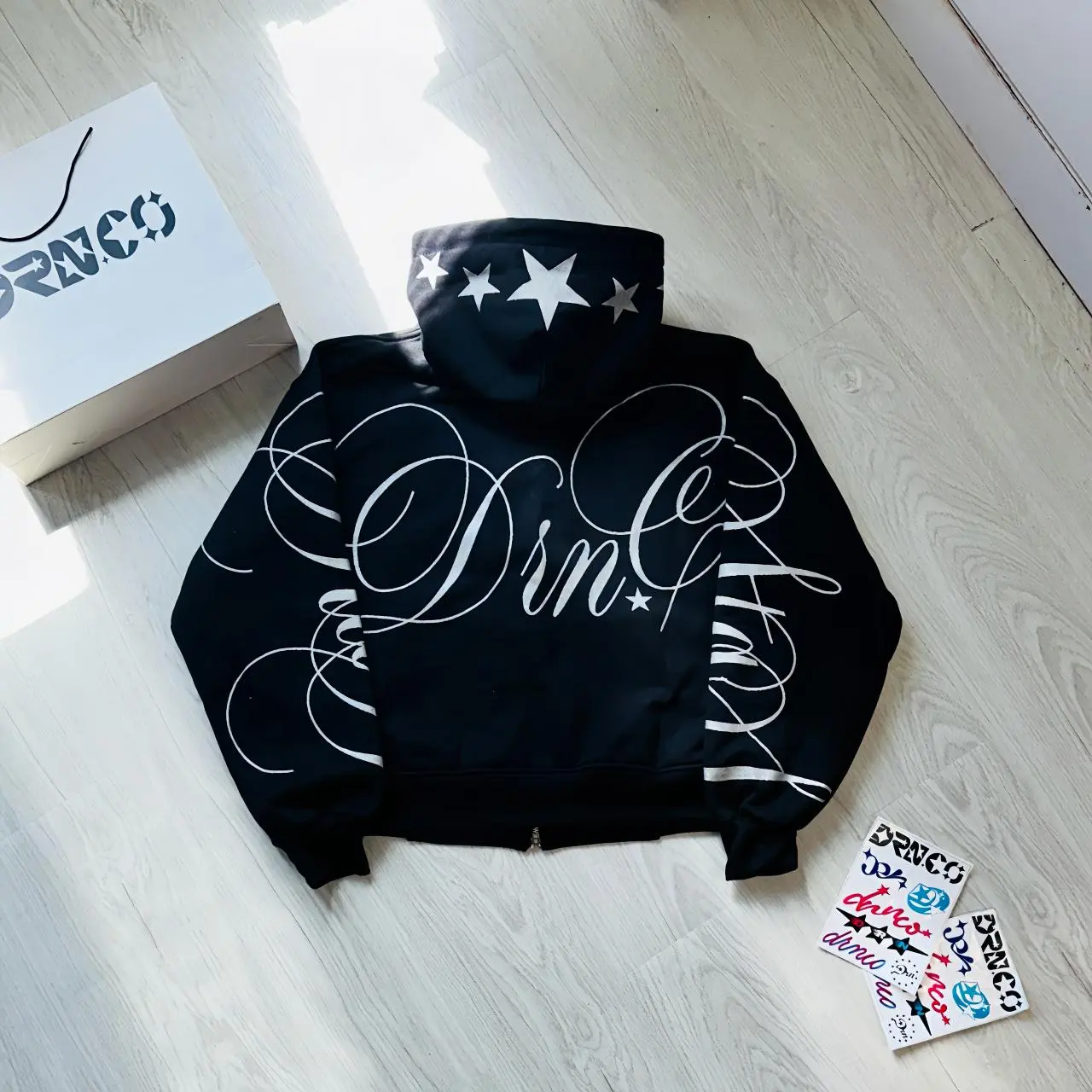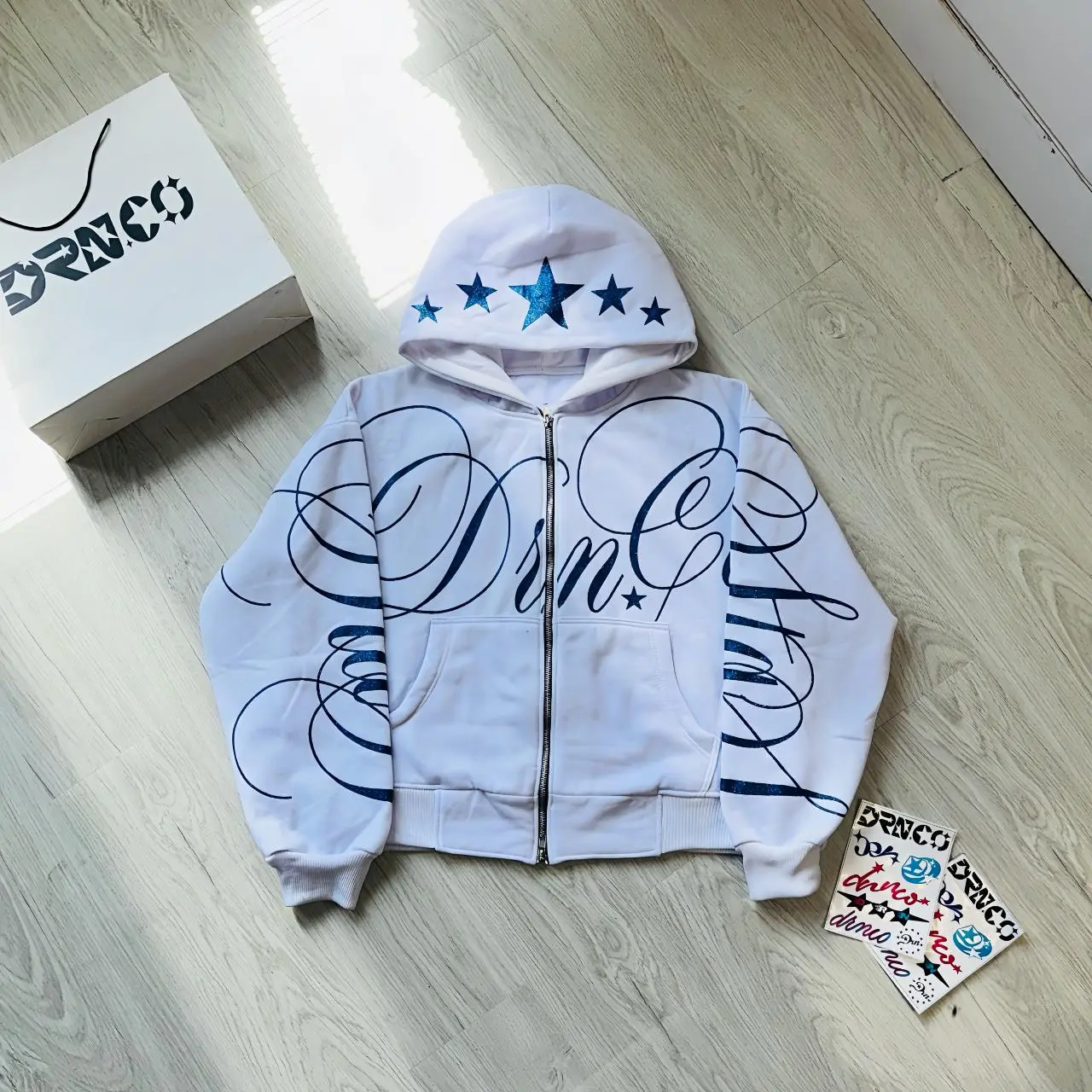 Hoodie BOXY DRN.CO Sablon GLITER Full PRINT adalah pilihan yang tepat untuk penampilan yang unik dan menarik. Dengan desain yang menarik dan model yang nyaman, hoodie ini akan menjadi favorit Anda. ๐Ÿ›๏ธ