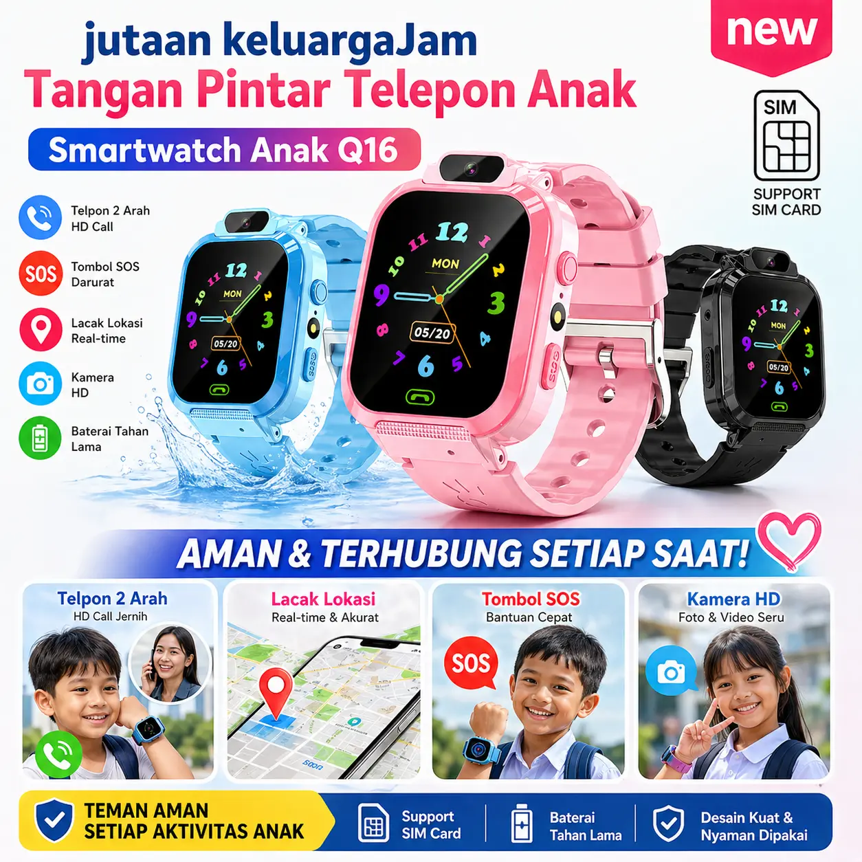 Arloji model Q16 -2G adalah panggilan suara dan tidak mendukung panggilan video.