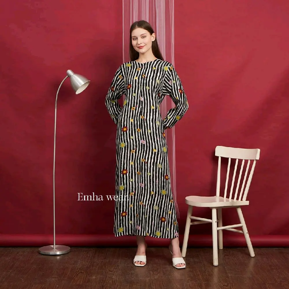 ✨ Gamis wanita berbahan viscose premium yang adem, lembut, dan nyaman dipakai sepanjang hari. Cocok untuk aktivitas harian maupun acara santai, tetap memberikan tampilan rapi dan stylish. Detail produk: bahan viscose premium (ringan, adem, dan jatuh). Lingkar dada 110 cm, panjang baju 135 cm. Busui friendly dengan resleting depan. Lengan karet, nyaman dan wudhu friendly. Cutting loose fit, tidak ketat.