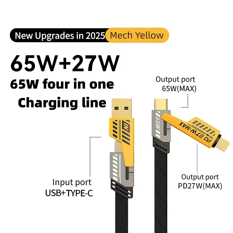Data pengisian cepat 4-dalam-1 mekanis ini menggunakan struktur paduan paduan inovatif untuk. Mendukung pengisian cepat daya tinggi PD65W MAX, dapat dengan mudah mengisi daya penuh darah cepat untuk laptop, tablet, ponsel dan perangkat lainnya;