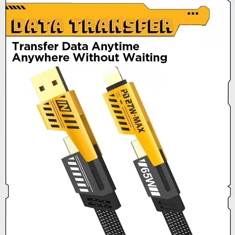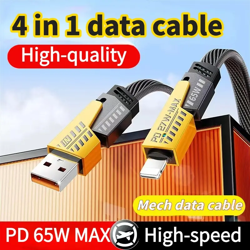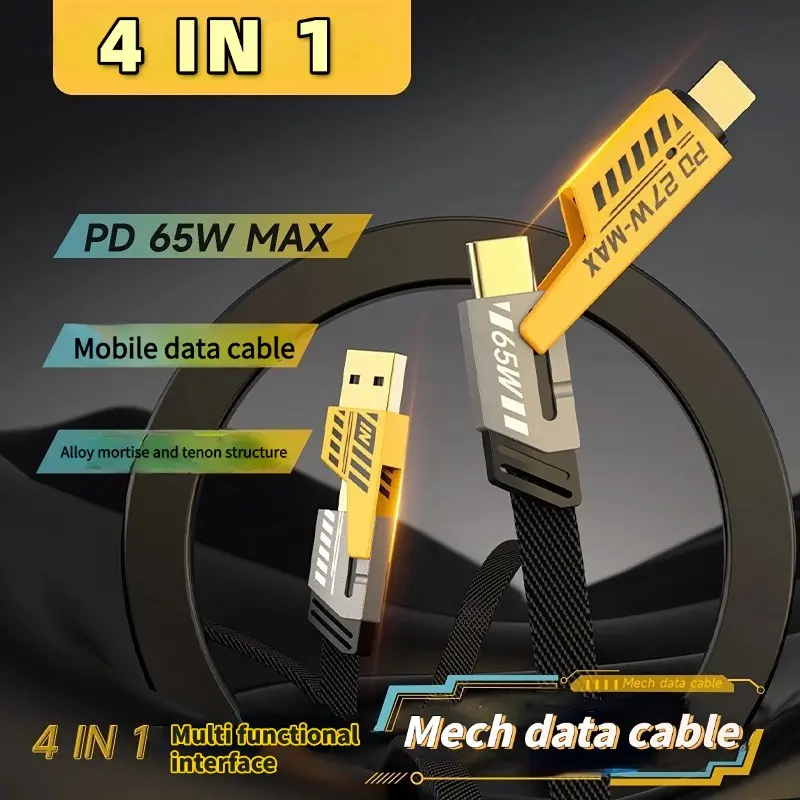 5. Kabel Charger 4-in-1 Gaya Mekanis Premium, Desain Futuristik Anti Putus, Fast Charging Serbaguna untuk HP & Tablet