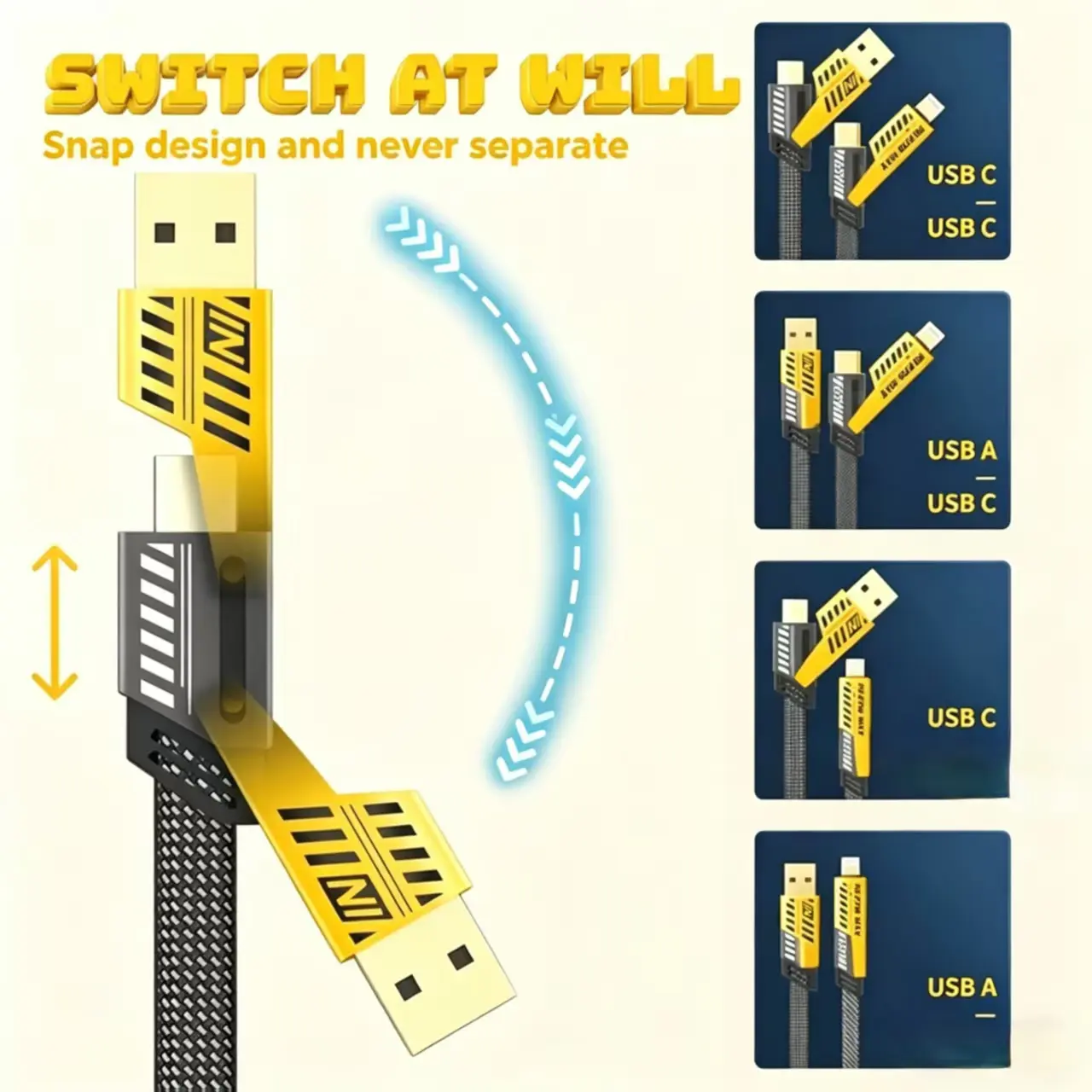 Kabel Charger 4-in-1 Gaya Mekanis Premium, Desain Futuristik Anti Putus, Fast Charging Serbaguna untuk HP & Tablet