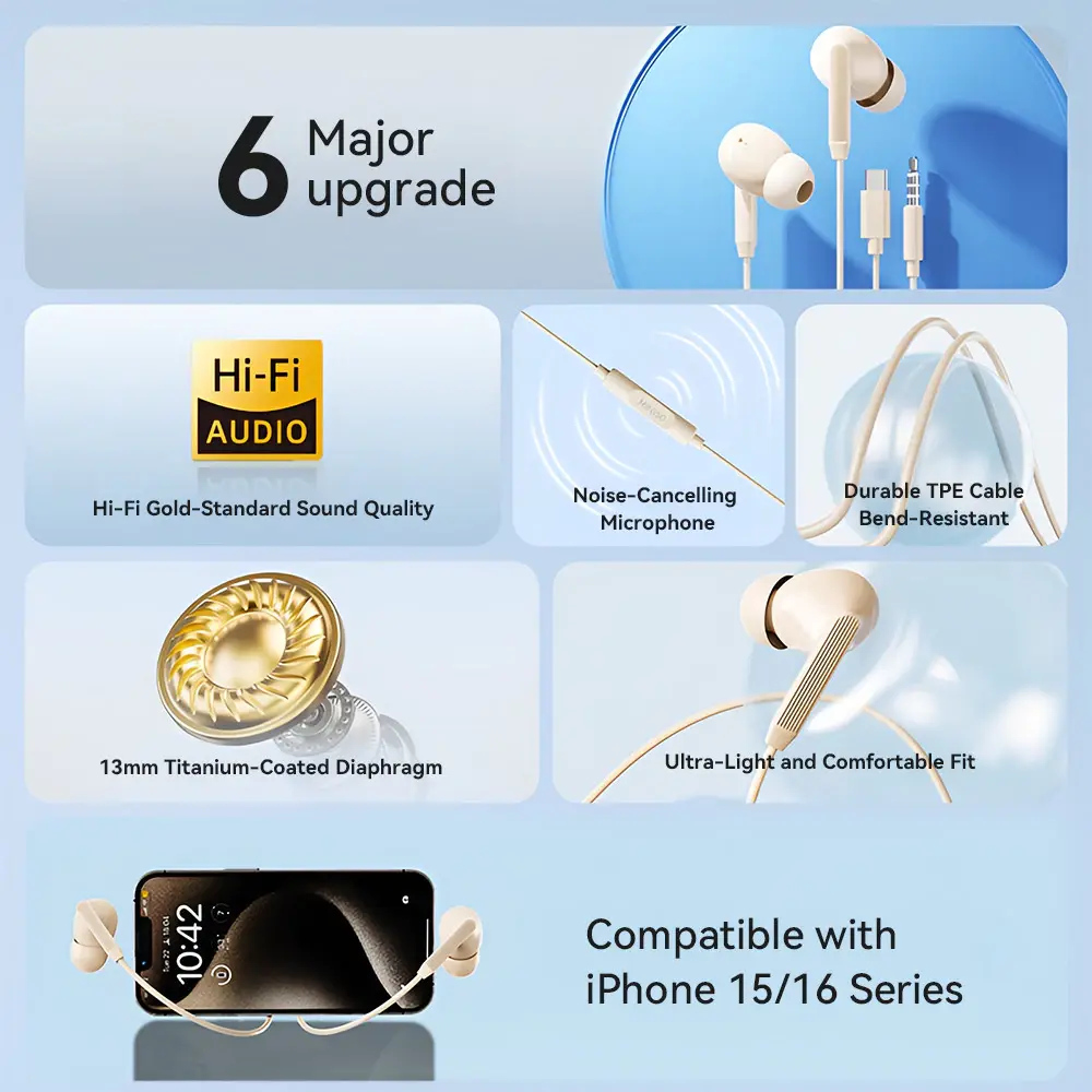 1*KiiP Headset Wired HiFi Earphone Kabel ENC Call Noise Cancellation