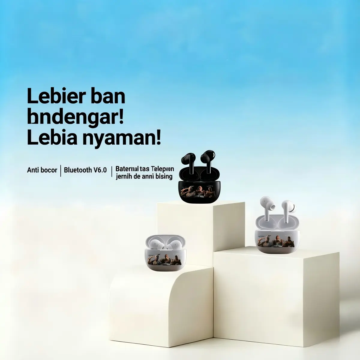 - Earphone nirkabel dengan teknologi Bluetooth 5.3.