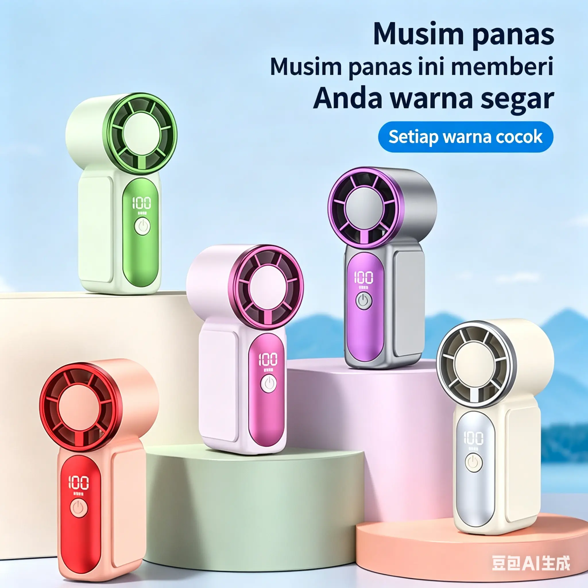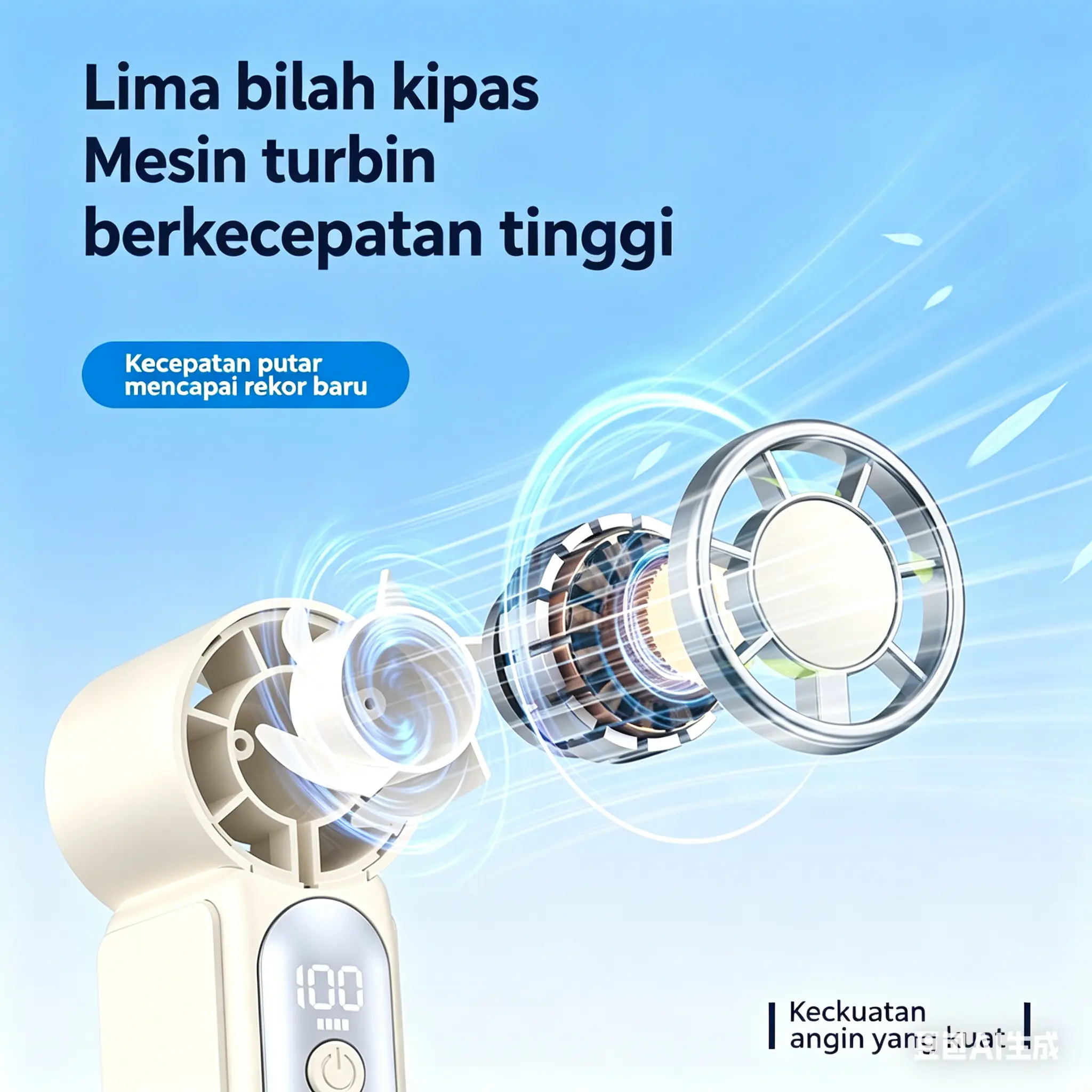 5. Kipas genggam mini turbin 100 kecepatan - aliran udara kuat, pendinginan cepat, tahan lama, dan mudah dibawa.