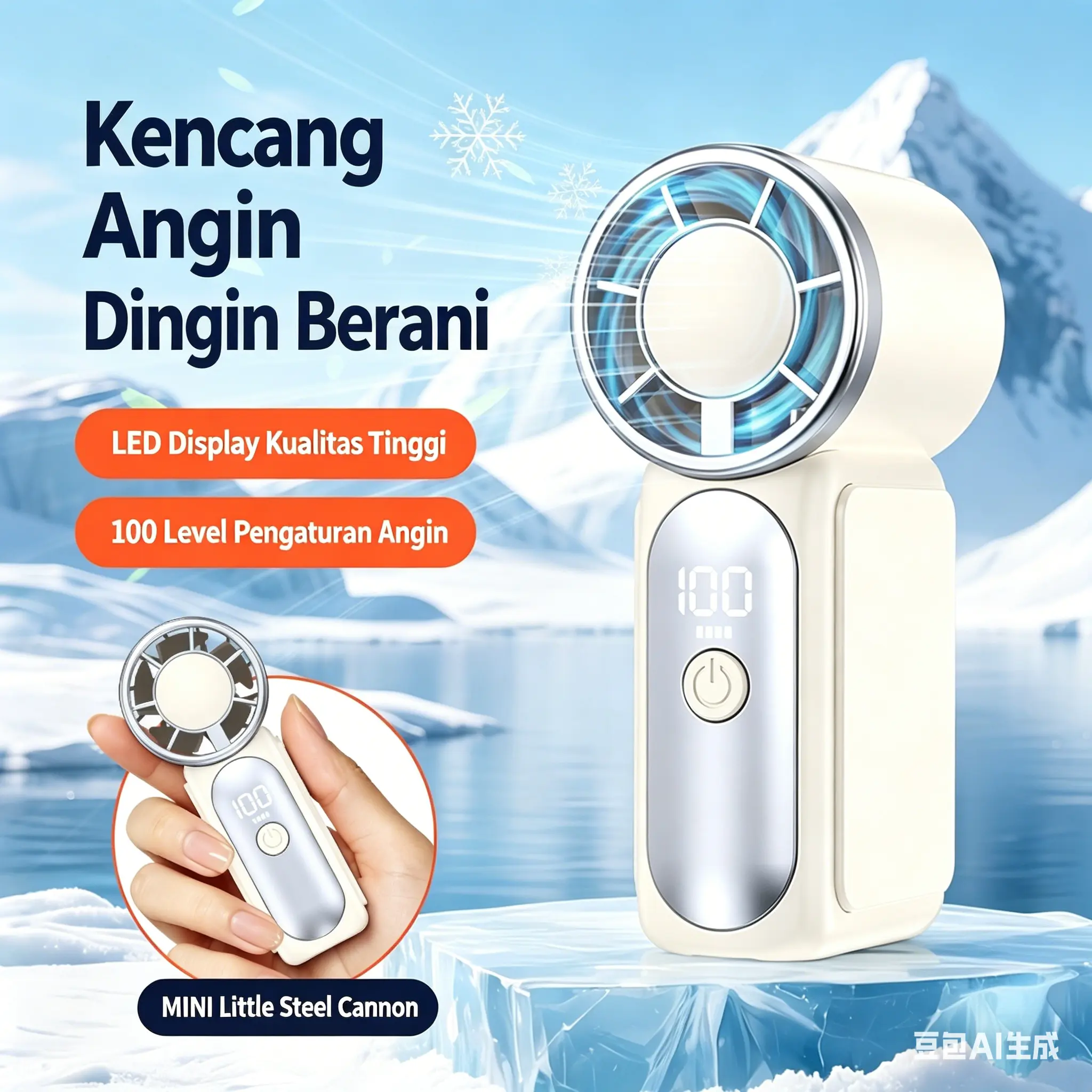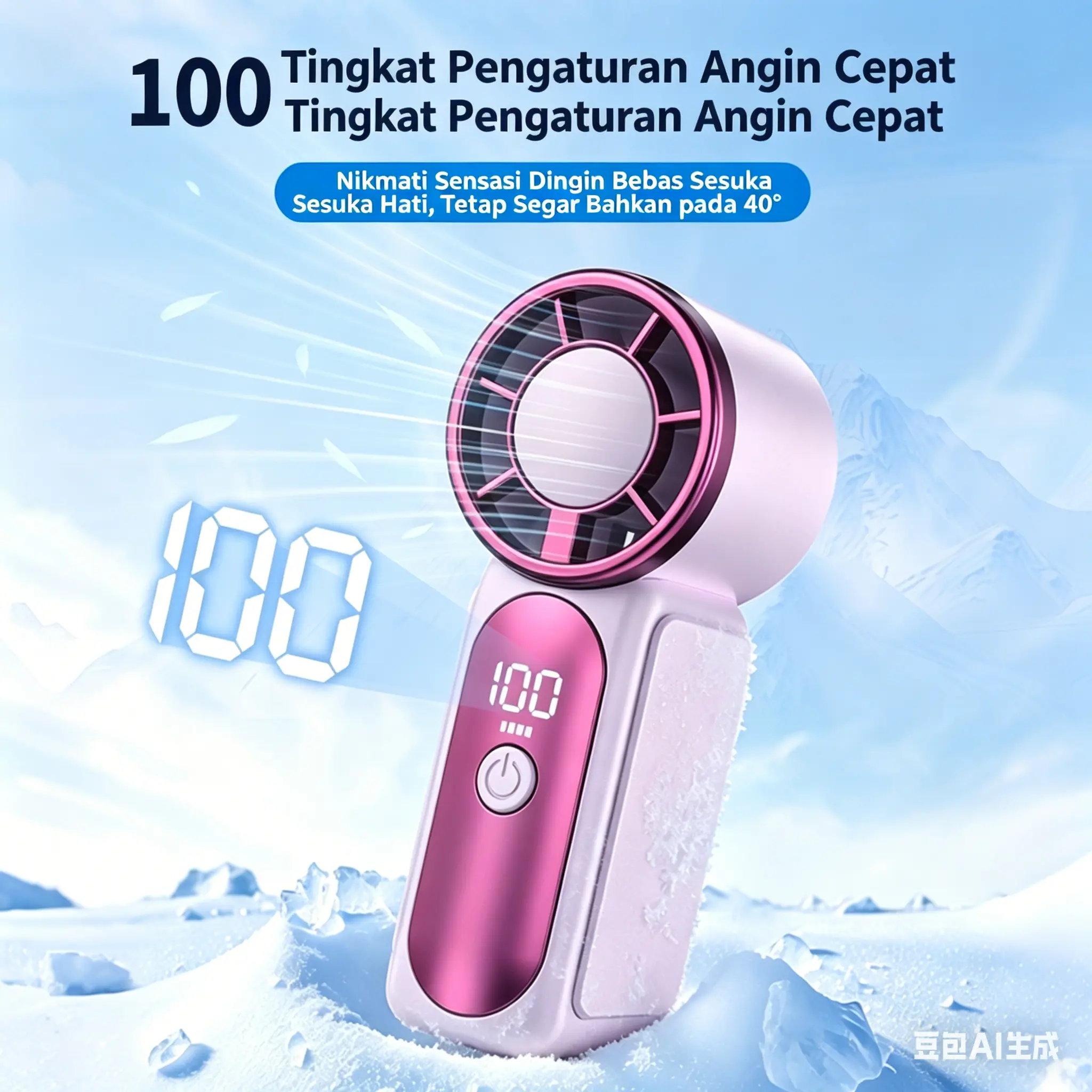 Kipas genggam mini turbin 100 kecepatan - aliran udara kuat, pendinginan cepat, tahan lama, dan mudah dibawa.