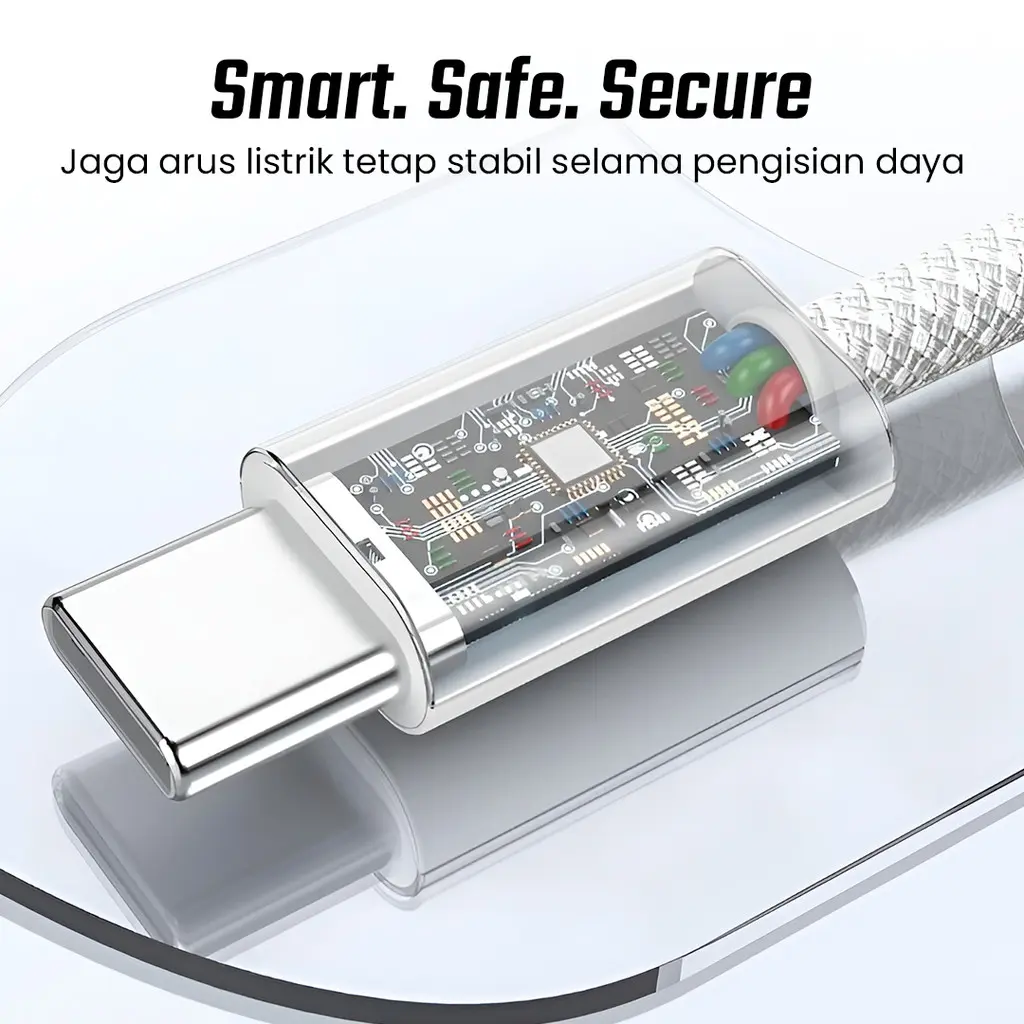 Isi Daya dalam Sekejap Tak perlu menunggu lama untuk mengisi daya smartphone. Kabel charger IBNUNU sudah mendukung fitur fast charging Power Delivery (PD) dengan output daya hingga 60 W. Cocok untuk menghemat waktu pengisian daya pada smartphone, tablet, dan laptop yang mendukung fast charging. Lebih dari Sekedar Charger Tak hanya proses pengisian daya yang cepat, kabel charger ini juga dapat digunakan untuk mentransfer aneka file dalam hitungan detik dengan kecepatan hingga 480 Mbps. Anda dapat memindahkan file, foto, atau video dengan lebih efisien. Chip Pintar Proteksi Keamanan Dilengkapi chip cerdas yang mampu mengatur arus dan tegangan secara otomatis. Melindungi perangkat dari overcharge, korsleting, dan overheating. Memberikan rasa aman saat digunakan dalam waktu lama. Material Braided Nylon Tahan Lama Lapisan luar menggunakan anyaman nylon braided yang kuat dan tahan terhadap gesekan. Kabel data tidak mudah kusut dan lebih tahan terhadap tarikan. Dirancang untuk penggunaan jangka panjang dengan daya tahan tinggi. Kuat dan Tahan Lama Lapisan nylon braided lebih kuat dan tahan terhadap penggunaan jangka panjang. Material ini juga bantu lindungi kabel dari kerusakan akibat tarikan, lipatan, maupun gesekan saat digunakan setiap hari. Dengan kualitas material yang lebih kokoh, kabel data ini tidak mudah kusut sehingga lebih nyaman digunakan. Isi Daya Berbagai Perangkat Plug USB Type C universal dapat mengisi daya berbagai perangkat hanya dengan 1 produk. Cocok untuk Anda yang mencari aksesoris gadget yang gesit dan canggih untuk smartphone, tablet, hingga laptop.