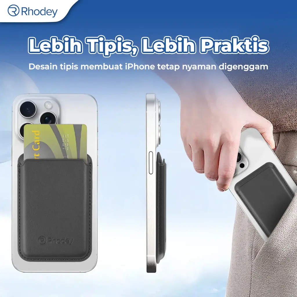 Transaksi jadi jauh lebih praktis dengan MagSafe Wallet dari Rhodey. Tempelkan dompet ke smartphone dengan magnet super kuat yang kompatibel dengan MagSafe. Kini Anda bisa menggunakan kartu dengan cepat tanpa harus membuka dompet. Kulit PU premium yang elegan, awet, dan nyaman digenggam setiap hari, serta mampu menyimpan kartu dengan aman untuk temani berbagai aktivitas Anda.