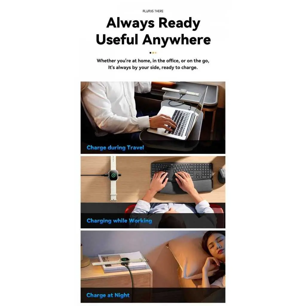Magnetic Fast Charging untuk Pengisian Stabil Dilengkapi dengan teknologi magnetik berkualitas tinggi, charger ini otomatis menempel dengan kuat pada Apple Watch, memastikan koneksi yang stabil selama proses pengisian. Dengan fitur fast charging, baterai terisi lebih cepat tanpa risiko overheating. Kompatibilitas Luas untuk Semua Seri Apple Watch Charger ini kompatibel dengan Apple Watch Series 1 hingga Series terbaru, termasuk Apple Watch SE dan Ultra. Apa pun model yang Anda gunakan, pengisian daya tetap optimal dan aman. Desain Ringkas dan Mudah Dibawa Dengan bentuk yang ringkas dan ringan, charger ini sangat praktis untuk dibawa ke mana saja. Cocok untuk penggunaan di rumah, kantor, maupun saat bepergian, tanpa perlu membawa kabel panjang atau adaptor tambahan. Material Premium dengan Perlindungan Cerdas Terbuat dari material berkualitas tinggi, charger ini tahan lama dan anti panas. Dilengkapi dengan sistem proteksi pintar, charger ini mampu mencegah overcharging, overheating, dan short circuit, sehingga Apple Watch Anda tetap aman saat diisi daya. Mudah Digunakan dengan Plug and Play Cukup hubungkan charger ini ke port USB laptop, power bank, atau adaptor untuk mulai mengisi daya Apple Watch Anda. Tidak perlu instalasi atau pengaturan tambahan, cukup tempelkan dan pengisian akan langsung dimulai.