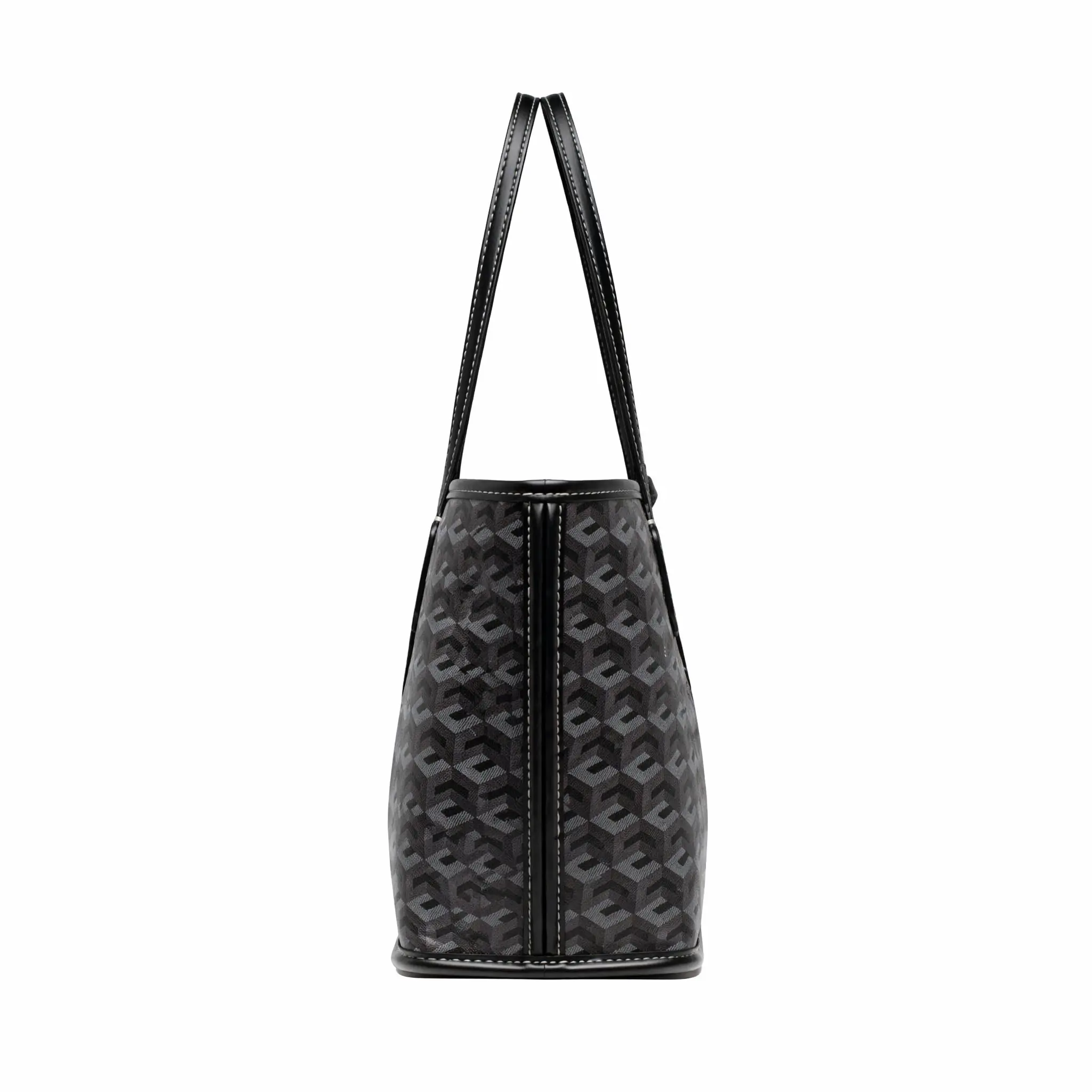Tote semi-struktur ini juga dilengkapi dengan pegangan atas dari kulit vegan yang cukup panjang untuk disandang di bahu.
