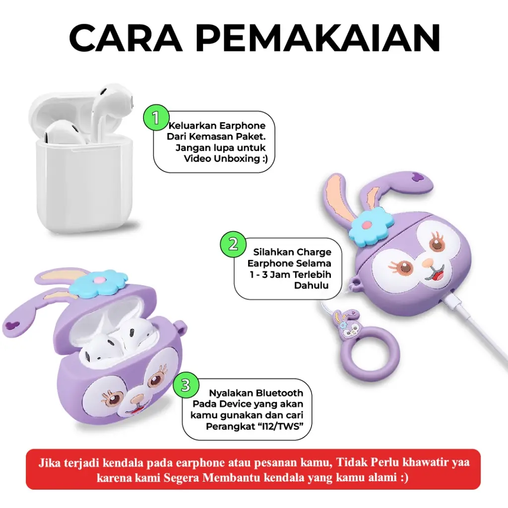 [Model]: TWS i12 +Casing Kartun TPU