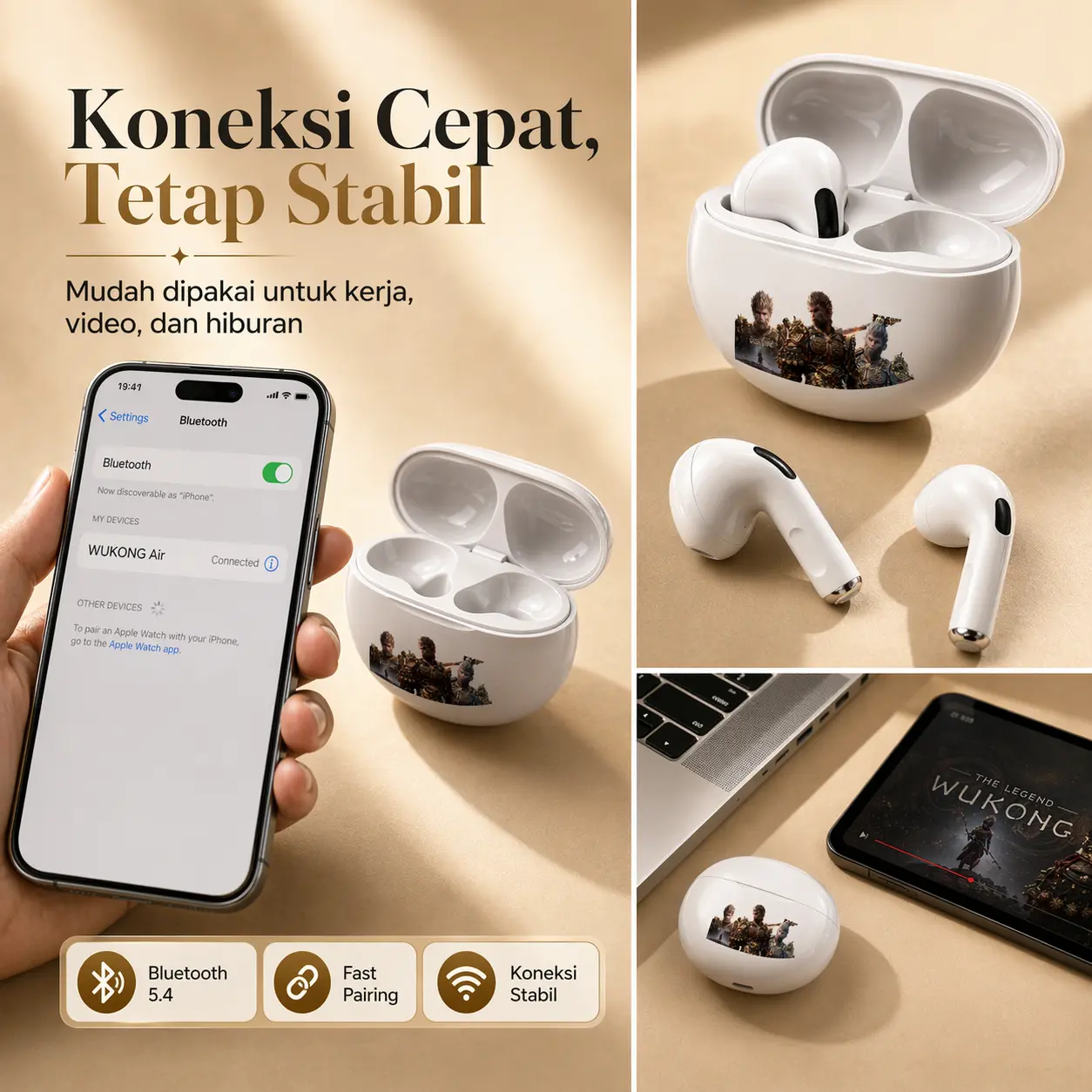 Earbud TWS edisi khusus Wukong dengan desain minimalis mewah dan elegan. Ukuran kecil ringkas, mudah dibawa ke mana saja. Nyaman dipakai seharian, tidak sakit telinga dan tidak mudah lepas.