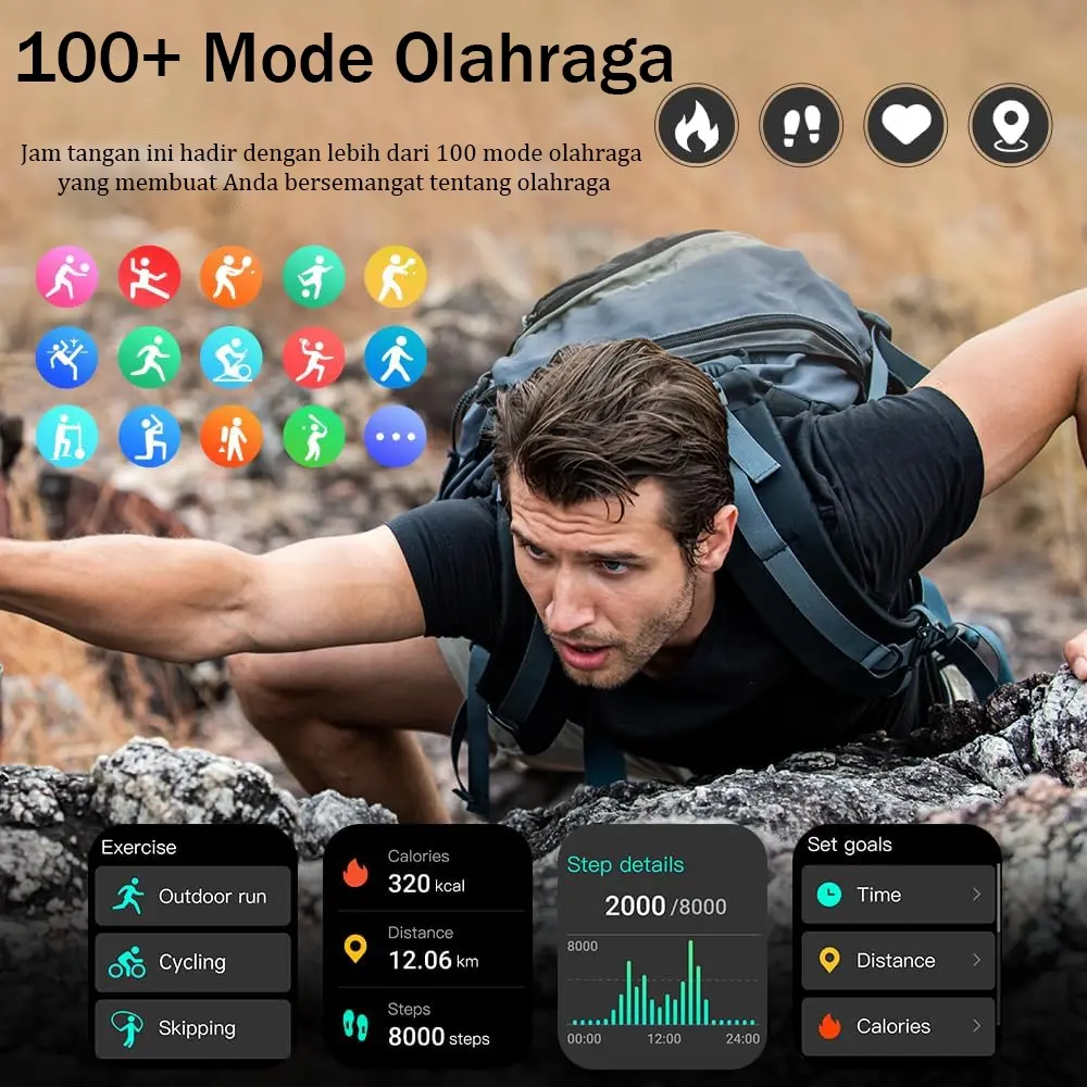Pelacak Aktivitas Sepanjang Hari: Langkah / Jarak Olahraga, Kalori yang Terbakar