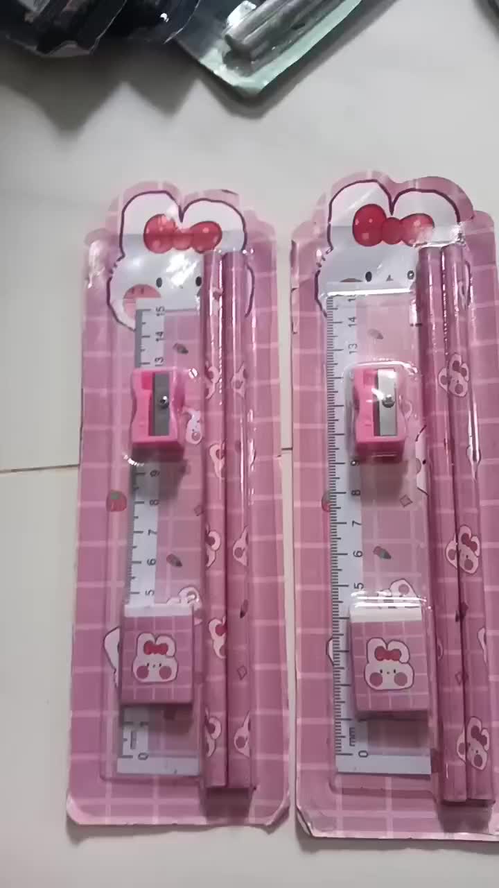 Keterangan:- Pensil = 17,4 Cm X 1 Cm ( P X D )- Penghapus = 2.8 Cm X 2 Cm X 1 Cm ( P X L X T )- Peruncing/Peraut = 2,5 Cm X 1,4 Cm X 1 Cm ( P X L X T )- Penggaris = 15,5 Cm X 3 Cm ( P X L )- Package = 1 Set ( Isi 5 )- Berat = 28gr- 1kg = 45pcs Isi Stationery:2 X Pensil1 X Peraut1 X Penghapus1 X Penggaris Set Alat Tulis Sangat Berguna Untuk Keperluan Sehari-Hari, Seperti Di Sekolah, Kantor, Atau Di Rumah. Dengan Menggunakan Set Alat Tulis, Seseorang Dapat Dengan Mudah Menulis, Menggambar, Atau Mengarsir Sesuai Kebutuhan. Setiap Komponen Dalam Set Ini Dirancang Untuk Memberikan Kenyamanan Dan Hasil Yang Baik Dalam Berbagai Tugas Kreatif Atau Pekerjaan Yang Membutuhkan Tulisan.