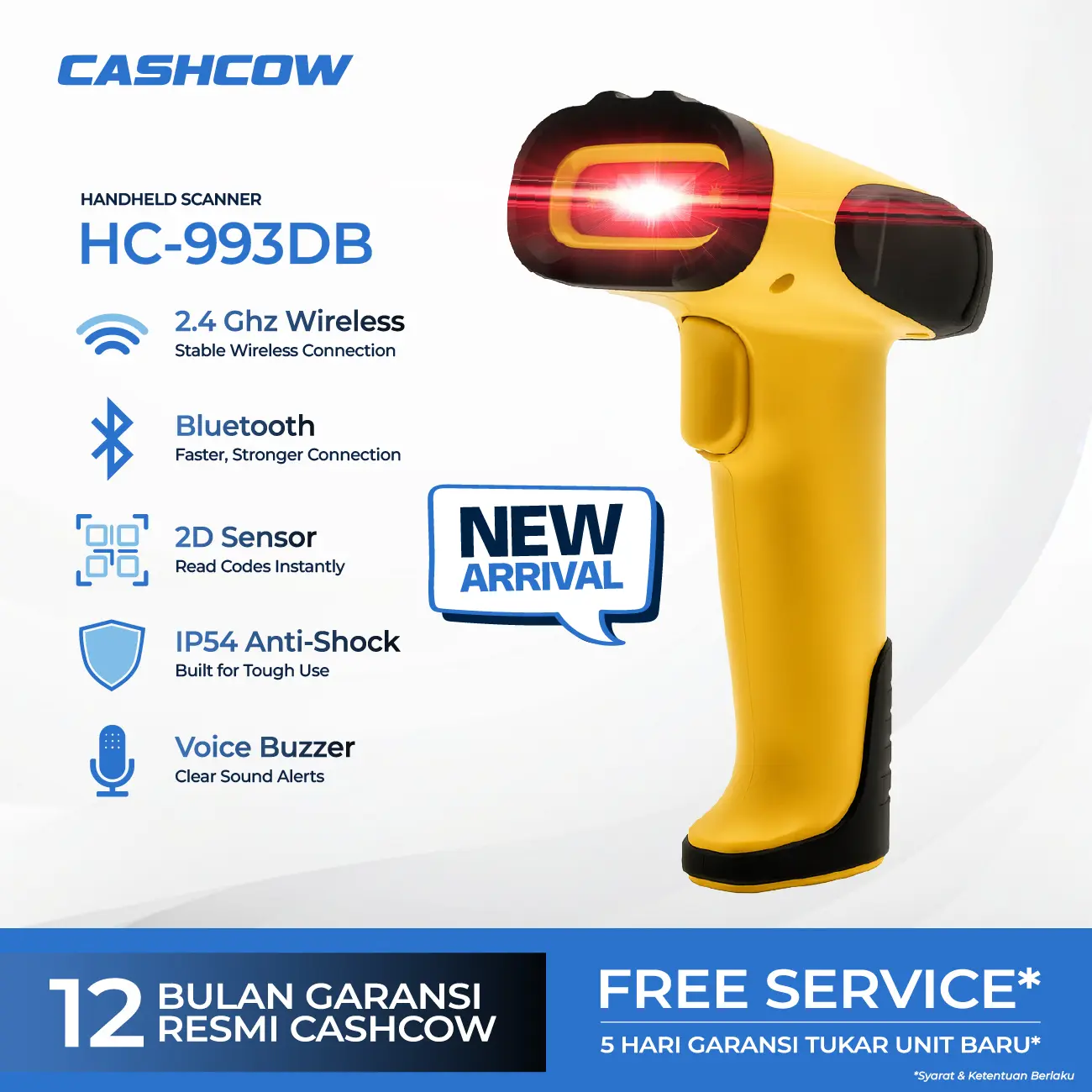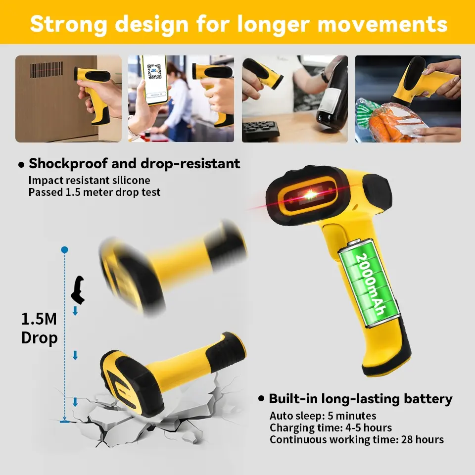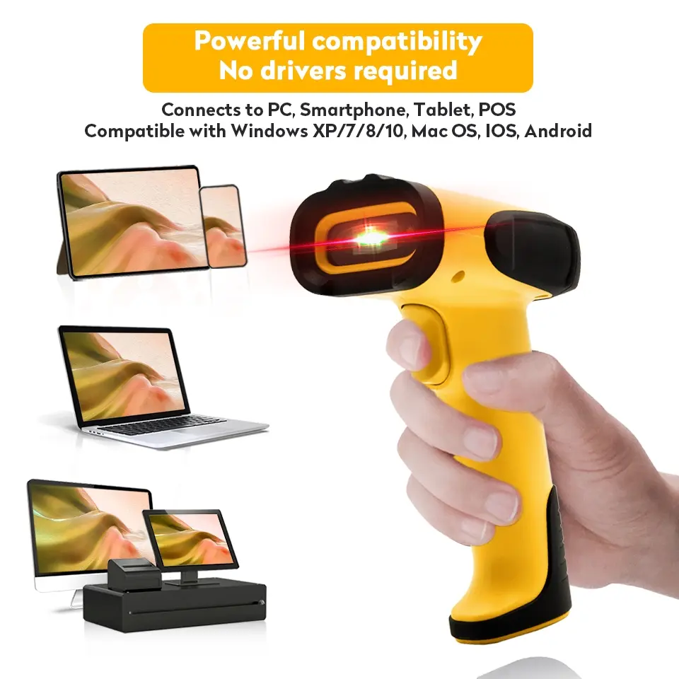 Upgrade proses kasir & stok opname! Scanner 2D imager serbaguna dengan koneksi 3-in-1 (Bluetooth, 2.4G wireless, USB kabel). Baca barcode 1D & 2D/QR dari kertas maupun layar, plug & play tanpa driver, baterai 2000mAh tahan lama, dan body tahan jatuh 1,5 m.