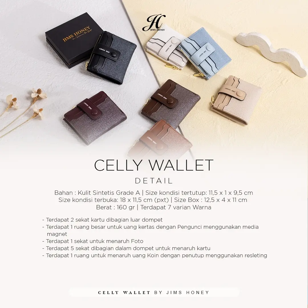 Yuk kenalan sama CELLY WALLET ✨dompet terbaru dari Jims Honey yang hadir dengan desain modis dan elegan. Terbuat dari bahan premium, dompet ini tak hanya terlihat stylish, tetapi juga tahan lama dan nyaman digunakan setiap hari.