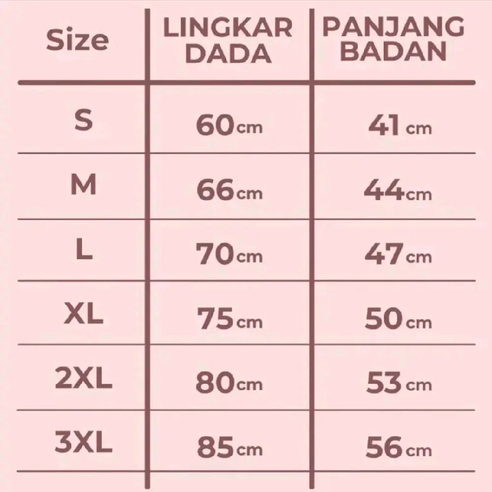 - 3XL = Lingkar Dada 84cm - Panjang 58cm